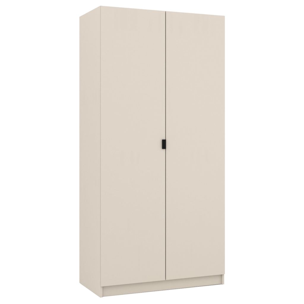 Táto moderná dvojdverová šatníková skriňa z kolekcie FOX ponúka dostatok úložného priestoru v elegantnom a jedinečnom dizajne. Elegantné línie a jemný odtieň cashmere pôsobia čisto a ľahko sa kombinujú s ostatným nábytkom v interiéri. Skriňa je vyrobená z 16 mm laminovanej nábytkovej dosky, ktorá zabezpečuje stabilitu a pevnosť konštrukcie. Vďaka modulovému systému je skvelou súčasťou vyskladanej šatníkovej zostavy podľa individuálnych potrieb.