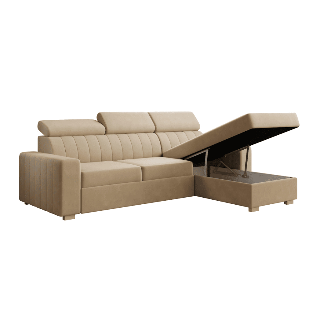 Hľadáte priestrannú, pohodlnú a zároveň praktickú sedačku do obývačky? Táto rozkladacia sedacia súprava LAOS L je ideálnou voľbou pre rodiny aj náročných zákazníkov, ktorí chcú spojiť štýl, funkčnosť a každodenný komfort. Vďaka svojmu tvaru poskytuje dostatok miesta na oddych pre viac osôb, pričom moderný dizajn a kvalitné čalúnenie dodajú vašej obývačke elegantný a nadčasový vzhľad. Sedačka je vybavená praktickým rozkladacím mechanizmom, vďaka ktorému ju jednoducho premeníte na pohodlné lôžko pre návštevy. Veľká plocha na spanie zabezpečí komfort aj počas celej noci. Integrovaný úložný priestor po oboch stranách je ideálny na uskladnenie vecí, ktoré chcete mať vždy po ruke, no zároveň udržať poriadok v obývačke. Ponúka ideálny pomer ceny, kvality a funkčnosti.