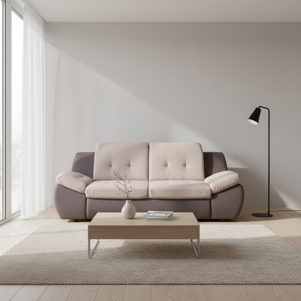 Sedacia súprava MELLO 3+2 má pružiny FALISTE, ktoré v kombinácii s polyuretánovou penou zabezpečujú pohodlné sedenie a je odolná voči presedeniu. Pena zaručí mäkkosť a pohodlie pri používaní. Kvalitné plastové nohy tvoria veľmi stabilnú základňu pre sedačku. Pred používaním odporúčame naimpregnovať. Čistenie je jednoduché, z našej ponuky odporúčame čistiť CAUCH Cleanerom.