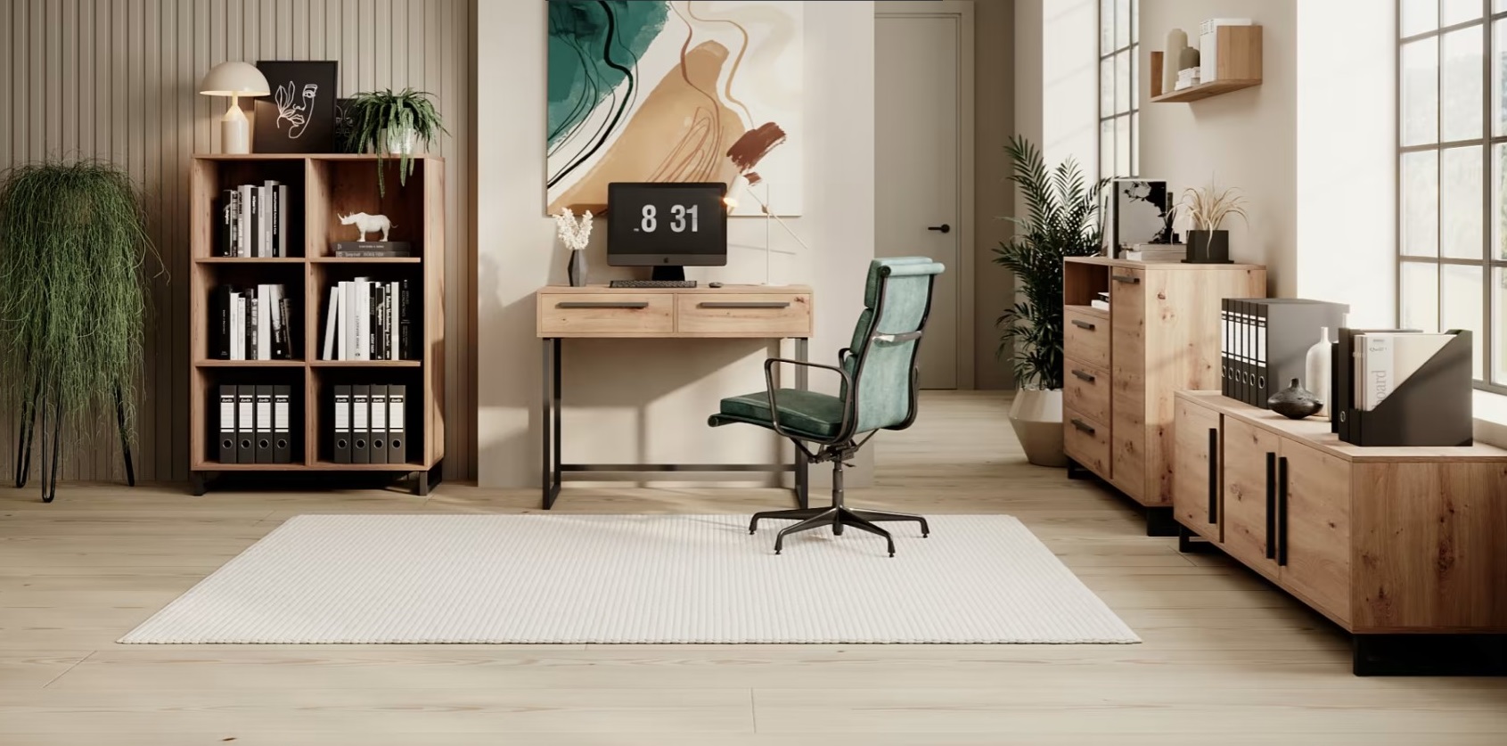 Získajte štýlový a funkčný nábytok do vašej kancelárie s našou loftovou zostavou ARIA v dekore dubu artisan. S jej vysokými nohami pridávate do priestoru vzdušnosť a moderný dizajn. Zostava ARIA je navrhnutá s dôrazom na praktickosť a estetiku, ponúka dostatok úložného priestoru pre organizáciu vašich vecí. Teplý odtieň dekoru dub artisan vytvára príjemnú atmosféru a kontrastuje s kovovými nohami. Vďaka množstvu prvkov si vybavíte kanceláriu podľa svojich predstáv.