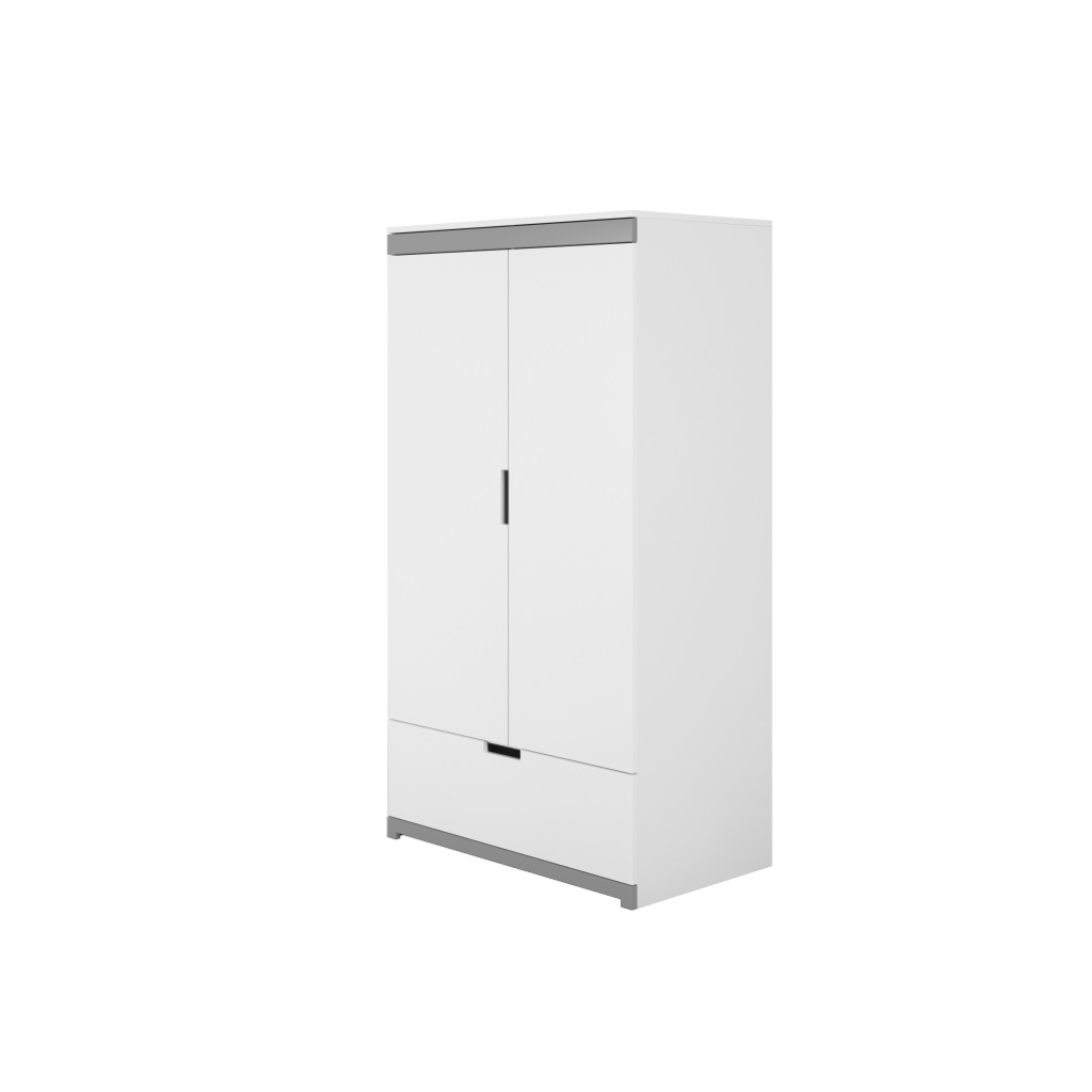 Praktická šatníková skriňa TOMI je ideálnou voľbou pre všetkých, ktorí hľadajú jednoduchosť, praktickosť a pohodlie. Nábytok bol navrhnutý s dôrazom na detail, aby vytváral príjemnú a útulnú atmosféru v miestnosti takú, do ktorej sa budete vždy radi vracať. Moderný dizajn robí z nábytku TOMI skvelé riešenie najmä do izby tínedžera. Praktické ergonomické výrezy zabezpečujú pohodlné otváranie. Pre vyššiu bezpečnosť je šatníková skriňa vybavená špeciálnymi nástennými konzolami, ktoré zvyšujú jej stabilitu. Pre zvýšenie bezpečnosti sa odporúča skriňu upevniť aj k stene. Skriňa je priestranná s policami, zásuvkou a vešiakovou tyčou.