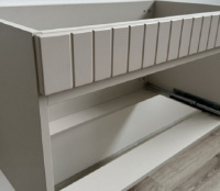 Kúpeľňové skrinky ICONIC CASHMERE sú vyrobené z kvalitných materiálov, ktoré zaručujú jej dlhú životnosť a odolnosť voči vlhkosti a opotrebeniu. Korpusy jednotlivých skriniek sú vyrobené z kvalitného 16 mm laminátu, rovnakú hrúbku majú aj MDF čelá. Výsuvné kovanie Häfele na zásuvkách zaručí užívateľský komfort, zlepší funkčnosť nábytku a minimalizuje nárazy. Úchytky nahrádzajú frézované vrchné časti na dvierkach a zásuvkách. Chápeme, že nikto nechce stráviť veľa času zložitou montážou nábytku, v balení preto nájdete prehľadný montážny návod, s ktorým zvládnete montáž cca za hodinu.