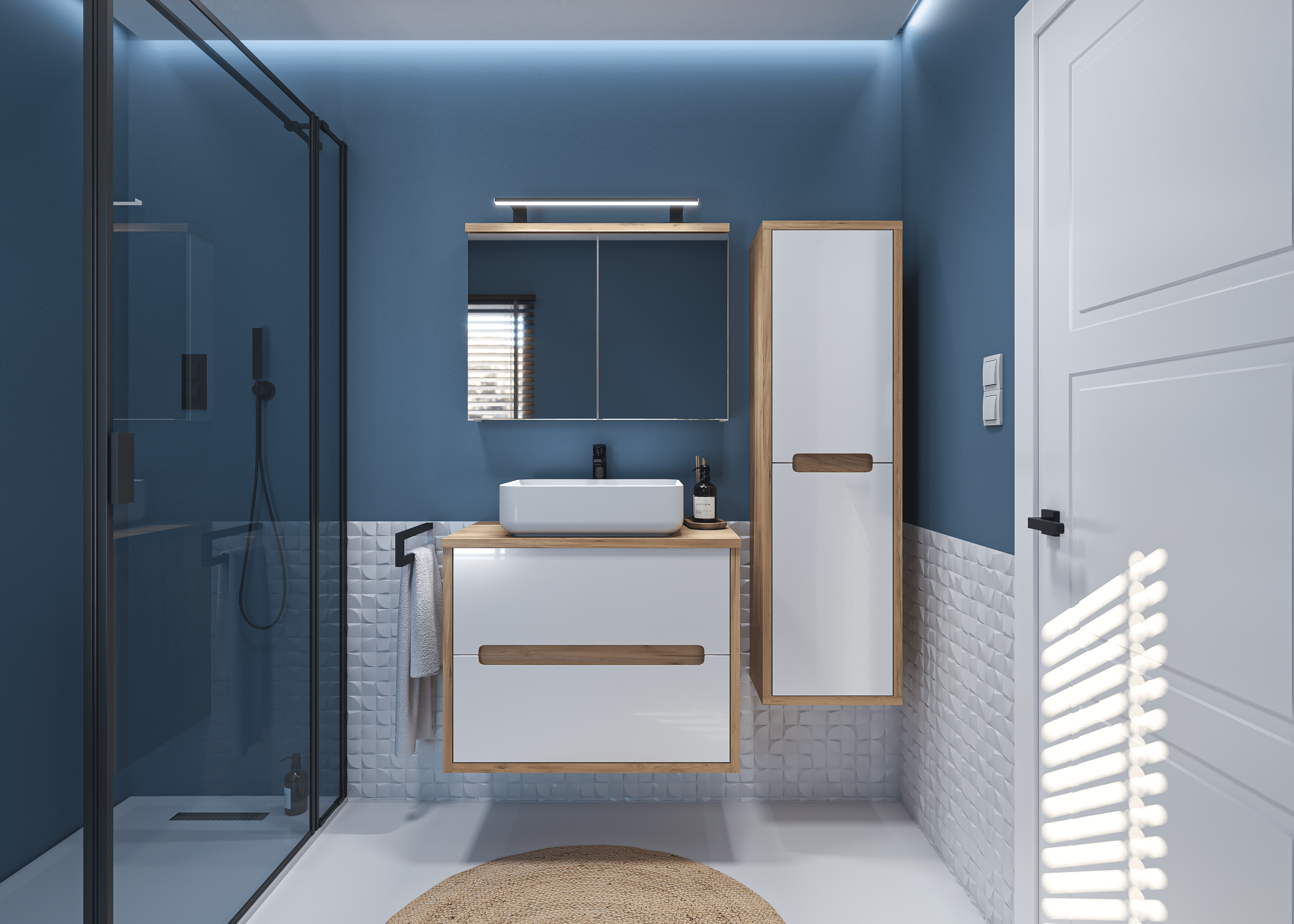 Chcete, aby vaša kúpeľňa pôsobila moderným, no zároveň útulným dojmom? Skrinky do kúpeľne NOBU v kombinácii bieleho lesku a dubu craft sú ideálnou voľbou! Spojenie čistého, lesklého bieleho povrchu s teplým dreveným dekorom vytvára luxusný a príjemný dizajn, ktorý sa hodí do moderných aj klasických interiérov. Biela opticky zväčšuje priestor, zatiaľ čo dub zlatý dodáva pocit tepla a prírodného vzhľadu. Užite si eleganciu a útulnosť vo vašej vlastnej kúpeľni!
