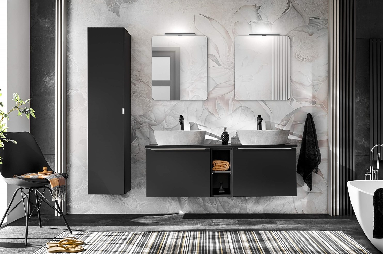 Hľadáte spôsob, ako dodať svojej kúpeľni štýlový a moderný vzhľad? Kúpeľňové skrinky z kolekcie SANTA FE BLACK vo farbe čierny mat môžu byť tým správnym riešením. Táto elegantná voľba nie je len trendy, ale aj praktická. Čierny matný povrch skriniek dodáva kúpeľni luxusný a elegantný vzhľad. Okrem svojho estetického prínosu ponúkajú kúpeľňové skrinky SANTA FE BLACK aj skvelé riešenia pre organizáciu a uskladnenie vašich kúpeľňových potrieb. Môžete si vybrať medzi rôznymi typmi zásuviek, políc a úložných priestorov, ktoré vám pomôžu udržať kúpeľňu čistú a upratanú. S ich štýlovým vzhľadom, odolnosťou a flexibilitou v dizajne sú skrinky tejto farby investíciou do dlhodobého a funkčného kúpeľňového priestoru. Kúpeľňová kolekcia SANTA FE Black je navrhnutá výhradne pre umývadlá na dosku.