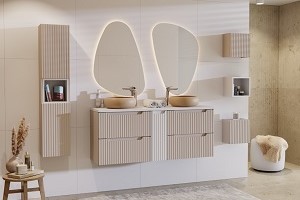 Praktické a kvalitné kúpeľňové skrinky si môžete farebne aj dizajnovo zladiť, vďaka čomu si zariadite kúpeľňu presne podľa vašich predstáv. Nadčasový kúpeľňový nábytok so skrinkami, ktoré majú dvierka a zásuvky, vám pomôže udržať si v kúpeľni poriadok. Kúpeľňové skrinky, ktoré sú doplnené LED zrkadlami, vám umožnia elegantne vyriešiť otázku osvetlenia. Lesklé skrinky v svetlých farbách a veľké zrkadlá opticky zväčšia aj tú najmenšiu kúpeľňu. Kúpeľňové skrinky bez nožičiek vám zjednodušia upratovanie a vaša kúpeľňa bude pôsobiť vzdušne. Kvalitné kúpeľňové skrinky spríjemnia vám a vašej rodine každodenné očistné rituály. Celá kúpeľňová zostava, ktorá sa skladá z praktických skriniek a umývadla či zrkadla, by mala veľkostne pasovať do vašej kúpeľne a ladiť s obkladmi aj dlažbou. Využite náš chat v pravom dolnom rohu a nechajte si poradiť s výberom umývadla a ďalšieho príslušenstva. Neváhajte, využite našu službu a objednajte si už zmontovaný tovar!
