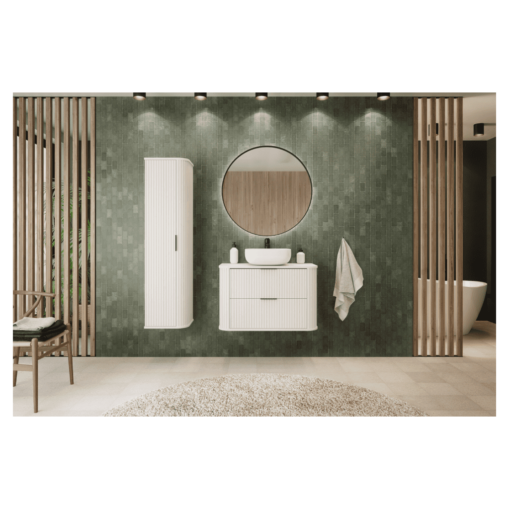 Ak chcete kúpeľňu posunúť na vyšší level, skrinka pod umývadlo v šírke 120 cm je skvelá voľba. Ponúka veľkorysý úložný priestor a maximálne pohodlie, vďaka ktorému budete mať všetko prehľadne uložené a kúpeľňa bude pôsobiť čisto a upratane. Biela farba dodáva interiéru svieži nádych a zároveň sa výborne kombinuje s bielou sanitou, čiernymi doplnkami aj modernými obkladmi. Dominantným dizajnovým prvkom skrinky pod umývadlo ELEGANCE White 120 cm sú vertikálne drážkované čelá, ktoré pôsobia luxusne a trendovo, a oblé hrany, ktoré zjemňujú celkový vzhľad skrinky. Čierne úchytky vytvárajú elegantný kontrast a zvýrazňujú moderný charakter nábytku – ideálne do kúpeľní v štýle modern, japandi či minimalizmus.