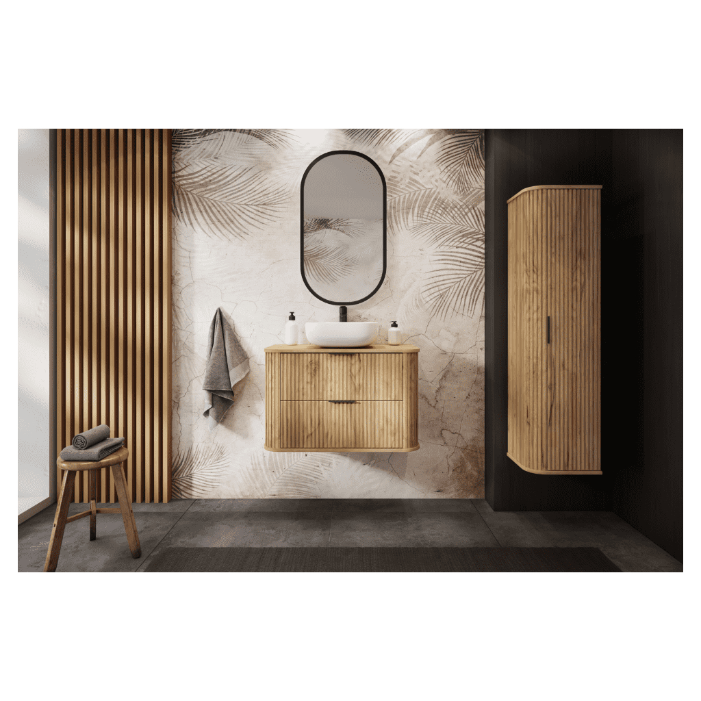 Závesná kúpeľňová skrinka ELEGANCE Craft zlatý je ideálnou voľbou, ak chcete kúpeľňu opticky odľahčiť a zároveň získať praktický úložný priestor. Vďaka montáži na stenu pôsobí priestor vzdušnejšie, ľahšie sa udržiava čistota pod skrinkou a celá kúpeľňa získa modernejší charakter. Dominantným prvkom je vertikálne drážkované čelo, ktoré dodáva skrinke prémiový vzhľad a štýl, ktorý je aktuálne veľkým trendom v interiérovom dizajne. Prevedenie v dekore craft zlatý je ľahko kombinovateľné – skvelo ladí s béžovým aj bielym obkladom, čiernymi doplnkami aj zlatými detailmi. Práve zlatá úchytka pôsobí ako jemný šperk, ktorý celý dizajn príjemne zvýrazní. Závesná skrinka do kúpeľne ELEGANCE je skvelá voľba pre tých, ktorí chcú čisté línie, moderný štýl a funkčný priestor na každodenné veci – bez kompromisov.