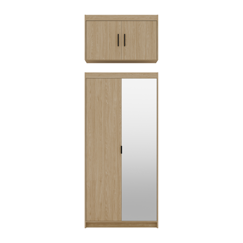 Šatníková skriňa 2D1 so zrkadlom / dub olejovaný je vyrobená z kvalitného lamina 15 mm, ktoré zaručuje odolnosť, dlhú životnosť a aj Vašu spokojnosť. Praktické prevedenie, pekné hnedé línie, mimoriadne dvere so zrkadlom, dokonalý dizajn a moderný vzhľad je typickým znakom nábytku. Krásne čierne plastové úchytky dodávajú celkový šmrnc skrini. Tak už viac neváhajte a doprajte svojej spálni nádych dokonalosti v podobe šatníkovej skrine ELLEN 2D1 / dub olejovaný. V prípade záujmu je možné doobjednať aj nadstavec ku skrini ELLEN 2D / dub olejovaný.