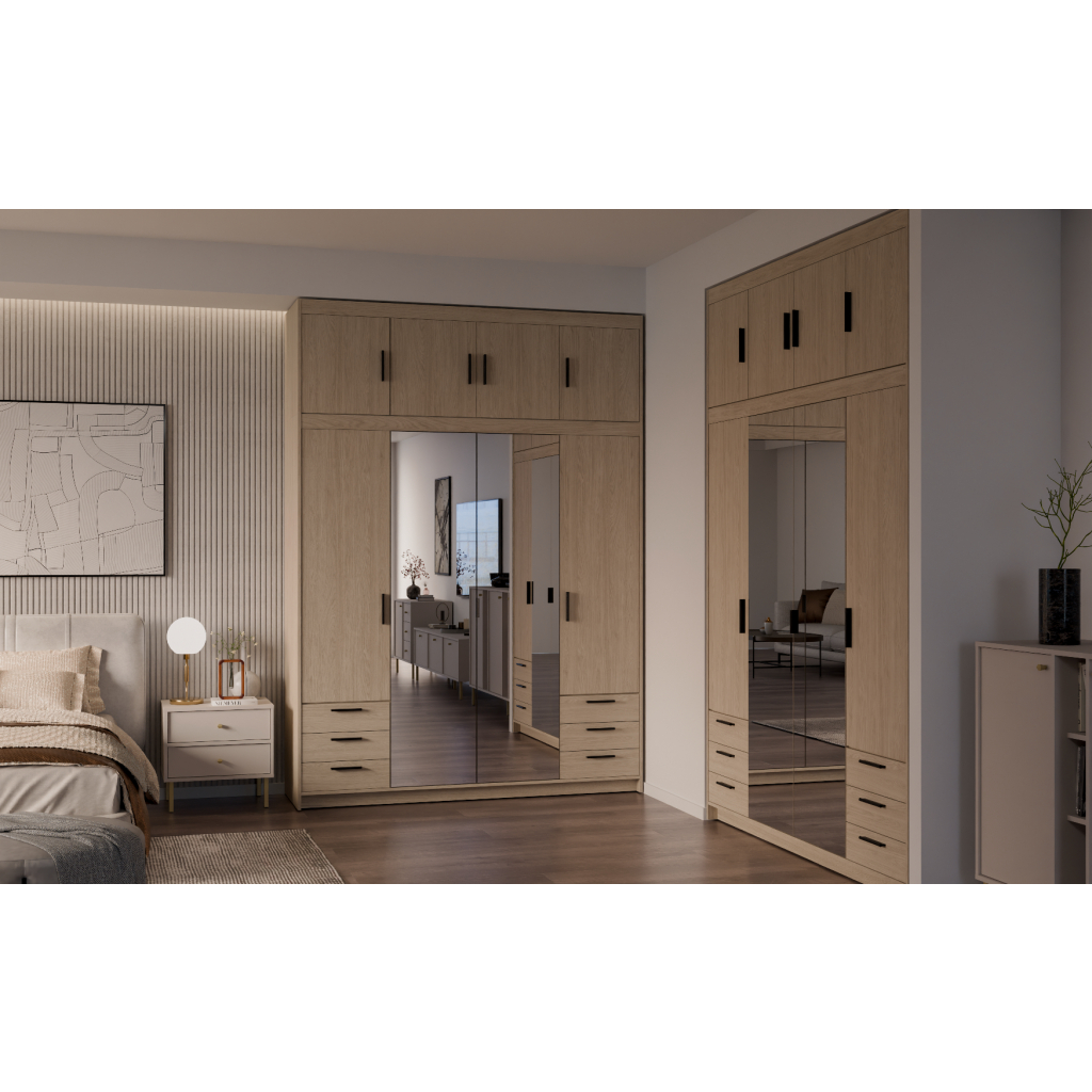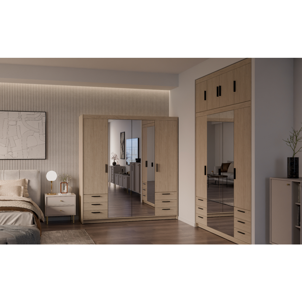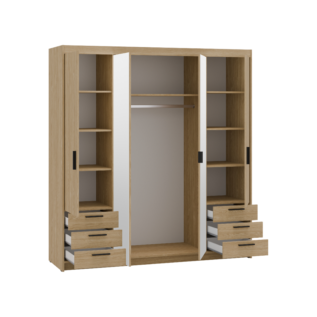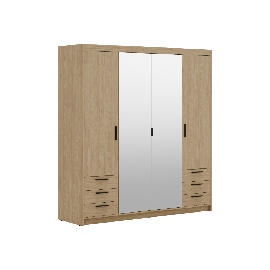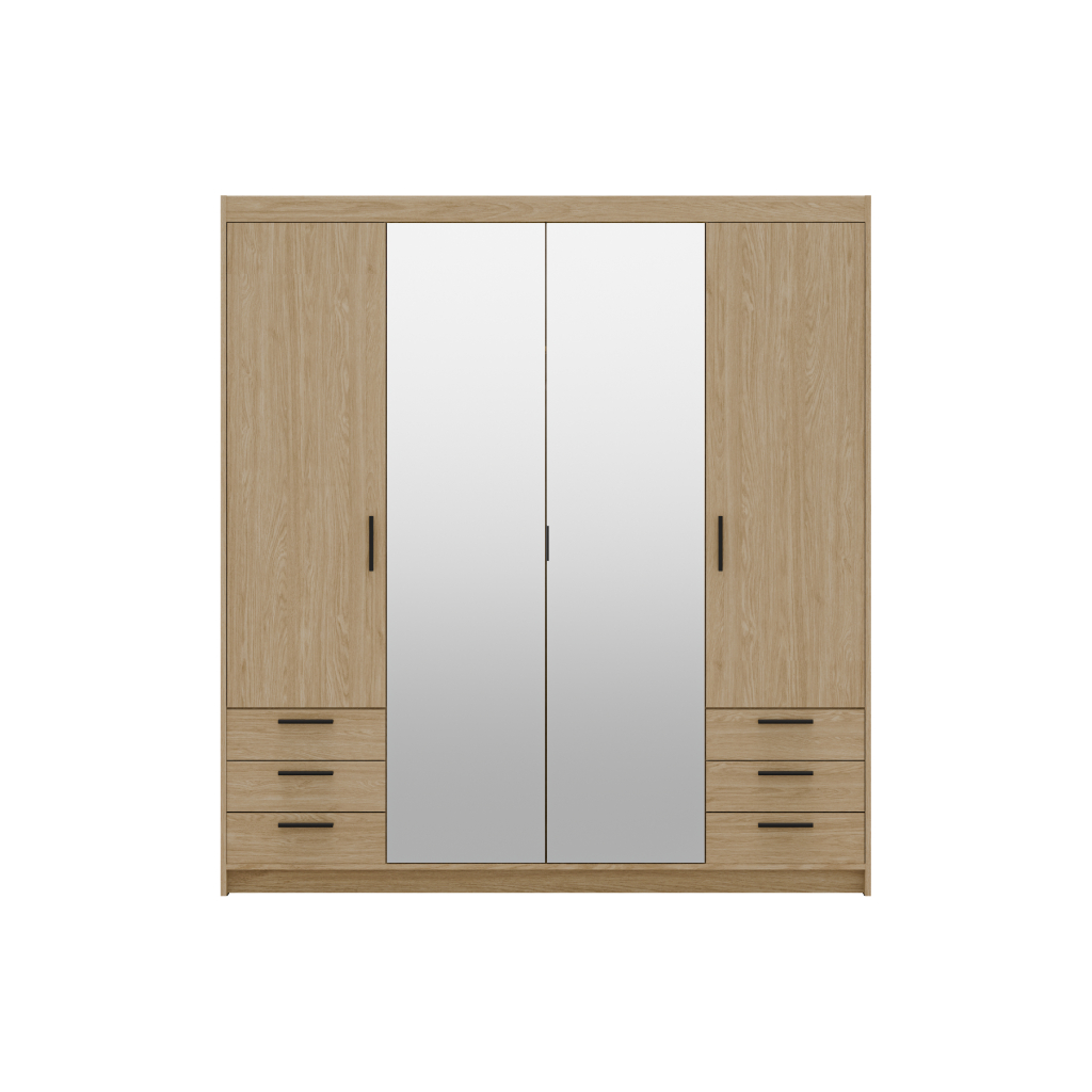 Šatníková skriňa ELLEN 4D6S so zrkadlom | dub olejovaný