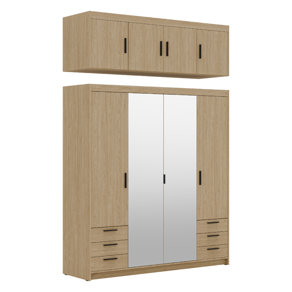 Široká šatníková skriňa 4D6S so zrkadlom / dub olejovaný je vyrobená z kvalitného lamina 15 mm, ktoré zaručuje odolnosť, dlhú životnosť a aj Vašu spokojnosť. Praktické prevedenie, mimoriadne zrkadlové dvere, nadčasové farebné prevedenie, dokonalý dizajn a moderný vzhľad je typickým znakom nábytku. Krásne čierne plastové úchytky dodávajú celkový šmrnc skrini. Tak už viac neváhajte a doprajte svojej spálni nádych dokonalosti v podobe šatníkovej skrine ELLEN 4D6S / dub olejovaný. V prípade záujmu je možné doobjednať aj nadstavec na skriňu ELLEN 4D / dub olejovaný. Pre viac úložného miesta je k dispozícii aj kontajner ELLEN.