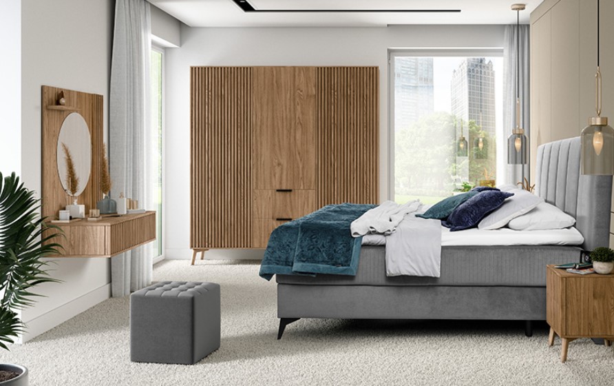 Sektorový nábytok ENTSIAN je vyrobený z laminovanej dosky s hrúbkou 16 mm v kombinácií s drevom. Nábytok ma frézované čela, čo znamená, že povrch má vytvorené zárezy, ktoré vytvárajú zaujímavý dizajnový prvok. Vyššie nohy nábytku sú vyrobené z plastu, čo dodáva nábytku eleganciu a stabilitu. Prirodzený a kvalitný vzhľad dopĺňa farebné prevedenie dub artisan. ENTSIAN je svojimi špecifikáciami ideálny pre tých, ktorí hľadajú moderný dizajn, samozrejmosťou sú ABS hrany. Originálnym moderným frézovaným nábytkom vytvoríte útulnú spálňu.