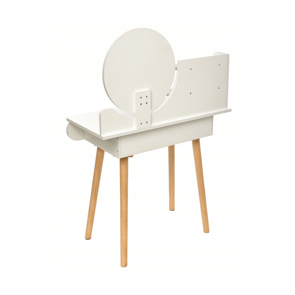 Očarujúci toaletný stolík SCANDI CM-891920 úžasne dotvorí ženský šatník alebo spálňu. Pre ženu je to originálny kútik na líčenie, účes. Zásuvky ideálne na kozmetiku, šperky, účtenky, písacie potreby a všetky drobnosti, ktoré nakoniec budú mať svoje miesto. Toaletný stolík je tiež možné využiť, ako pracovný stolík. Toaletný stolík obsahuje dve praktické zásuvky, dve poličky a krásne okrúhle zrkadlo.
