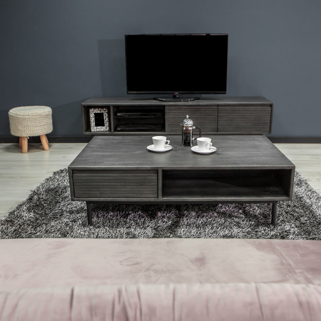 Nápaditá kolekcia sektorového nábytku CAPELLA je vyrobená z kvalitného akáciového dreva v originálnej farbe Tundra Grey, ktorú vkusne dopĺňajú kovové nohy v čiernom prevedení. Táto skvostná zbierka sektorového nábytku odkazuje na retro časy, ktoré sa stávajú opäť obľúbenými. Charakteristická drevená štruktúra na predných čelách poukazuje na nadčasovosť jednotlivých kusov nábytku. Všetky jednotlivé segmenty sektoru sú vyrobené s maximálnou precíznosťou tak, aby aj po niekoľkých rokoch pôsobili moderne a prirodzene. S týmto retro nábytkom si dokážete rýchlo a bez námahy zariadiť celý dom či byt a tak vdýchnuť každému interiéru čarovnú atmosféru. TV stolík je tiež súčasťou kolekcie nábytku CAPELLA. Nábytok je dodávaný v demonte.