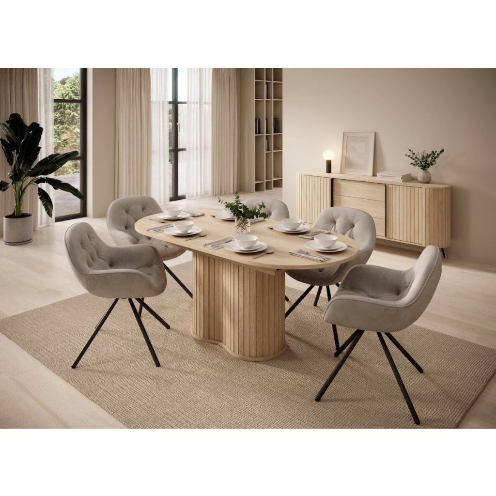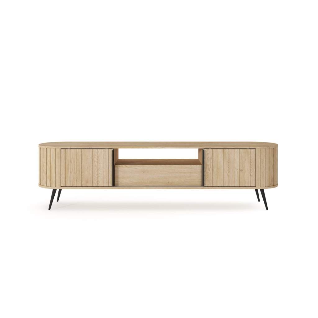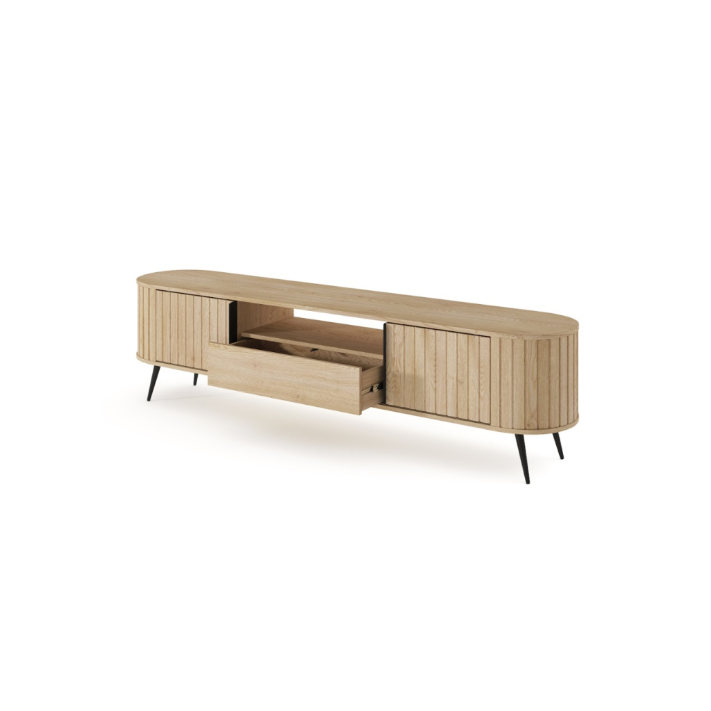 Praktická a zároveň mimoriadne štýlová a originálna kolekcia LOVLI umožní vytvoriť výnimočný, harmonicky zladený priestor. Jemné, prirodzené odtiene dubu Cremona rozžiaria tvoje interiéry a dodajú im prirodzenosť a sviežosť. To, čo však na tejto kolekcii zaujme najviac, je charakteristický tvar zaoblené boky a drážkované posuvné dvierka, ktoré dodávajú osobitý štýl. Celkový dojem Tv stolíka LOVLI 196 | 2D1S elegantne dopĺňajú kovové nohy a úchytky v čiernej farbe. Tv stolík má otváranie zásuviek zatlačením, PUSH TO OPEN.