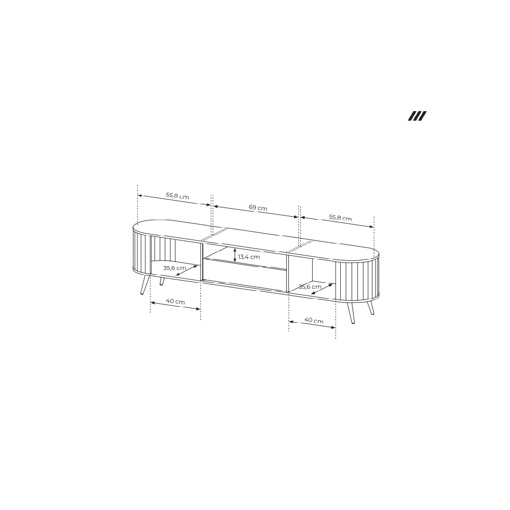 Tv stolík LOVLI 196 | 2D1S je vyrobený z odolného laminátu s ABS hranami, ktoré zabezpečujú dlhú životnosť a ochranu pred poškodením. Posuvné dvierka s drážkovaným vzorom a zaoblené bočné líšty z MDF vytvárajú charakteristický tvar nábytku. Celkový vzhľad dopĺňajú kvalitné kovové nohy a úchytky. Údržba je rýchla a jednoduchá na čistenie stačí použiť navlhčenú handričku alebo vhodný čistiaci prostriedok na nábytok.