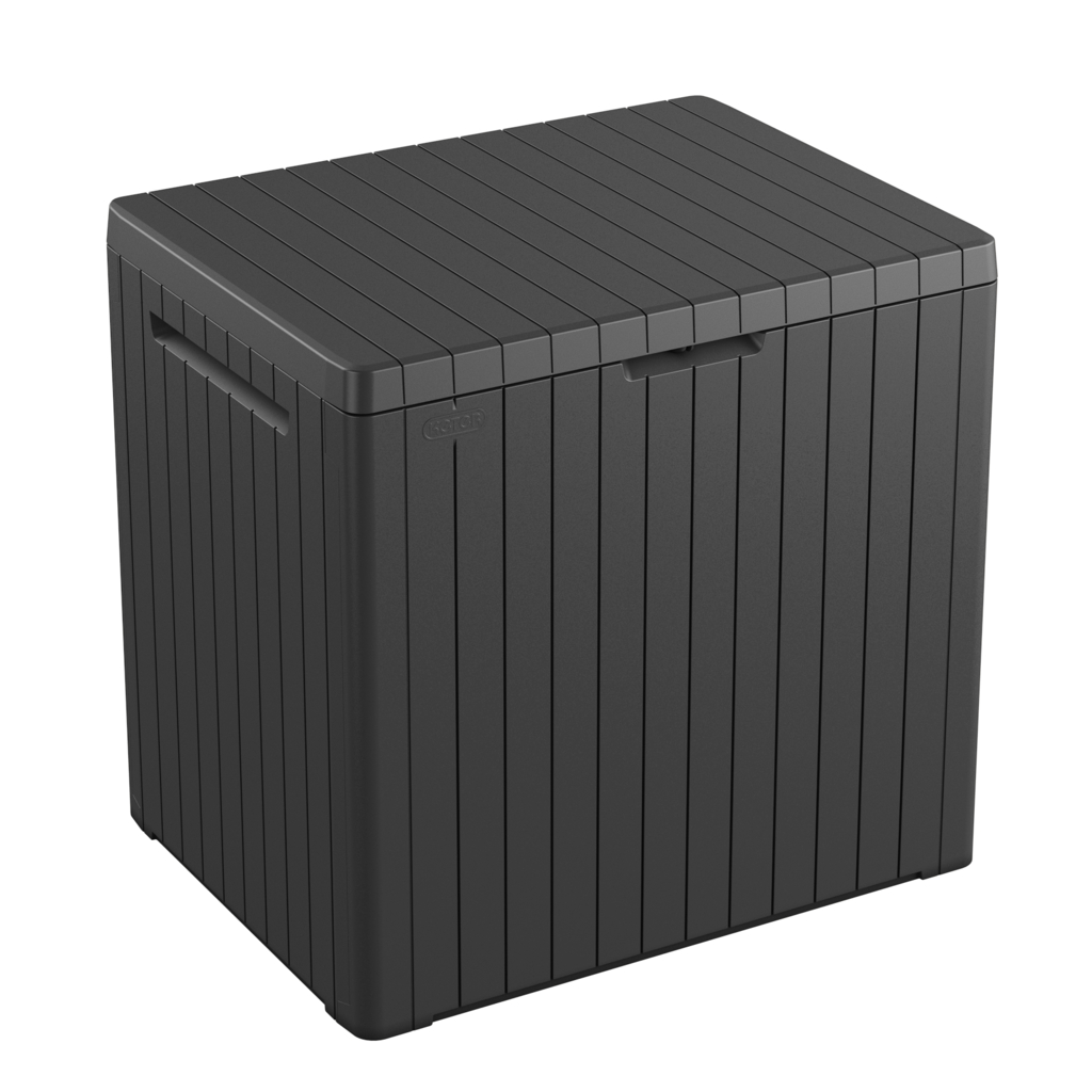 Úložný box URBAN s objemom 113 L je praktickým riešením na uloženie rôznych doplnkov na vašej záhrade, terase či balkóne. Poskytuje dostatok priestoru napríklad na záhradné náradie, podušky alebo prikrývky. Vďaka svojmu modernému dizajnu v grafitovej farbe môže slúžiť aj ako štýlový stolček. Montáž boxu je rýchla a jednoduchá a nevyžaduje použitie žiadneho špeciálneho náradia. Rozmery boxu sú 58 × 55 × 44 cm a jeho hmotnosť je 3,5 kg.