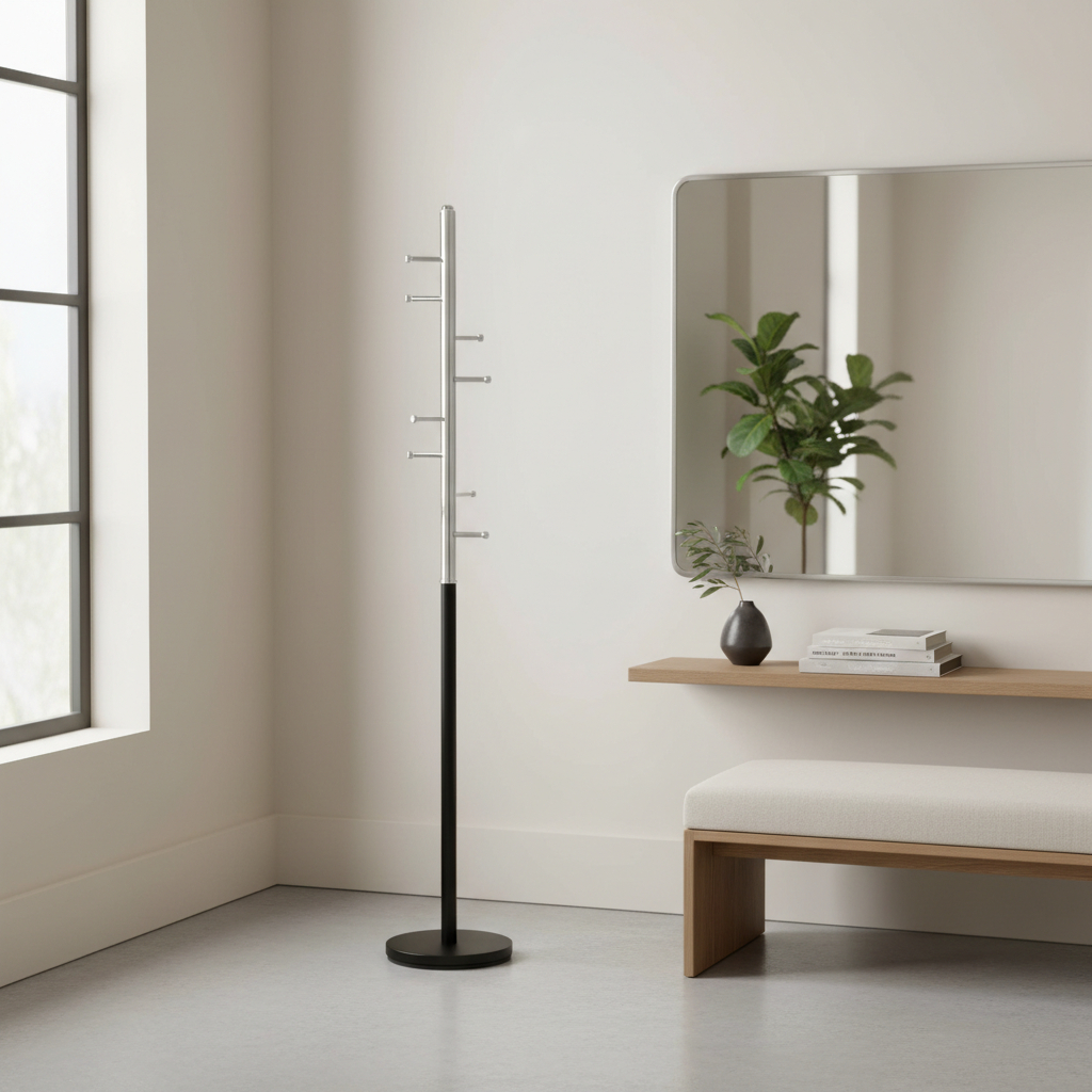 Vešiak je vyrobený z kvalitného kovu, ktorý je odolný voči poškodeniu, vlhkosti a vysokej teplote. Materiál je tiež jednoduchý na údržbu.