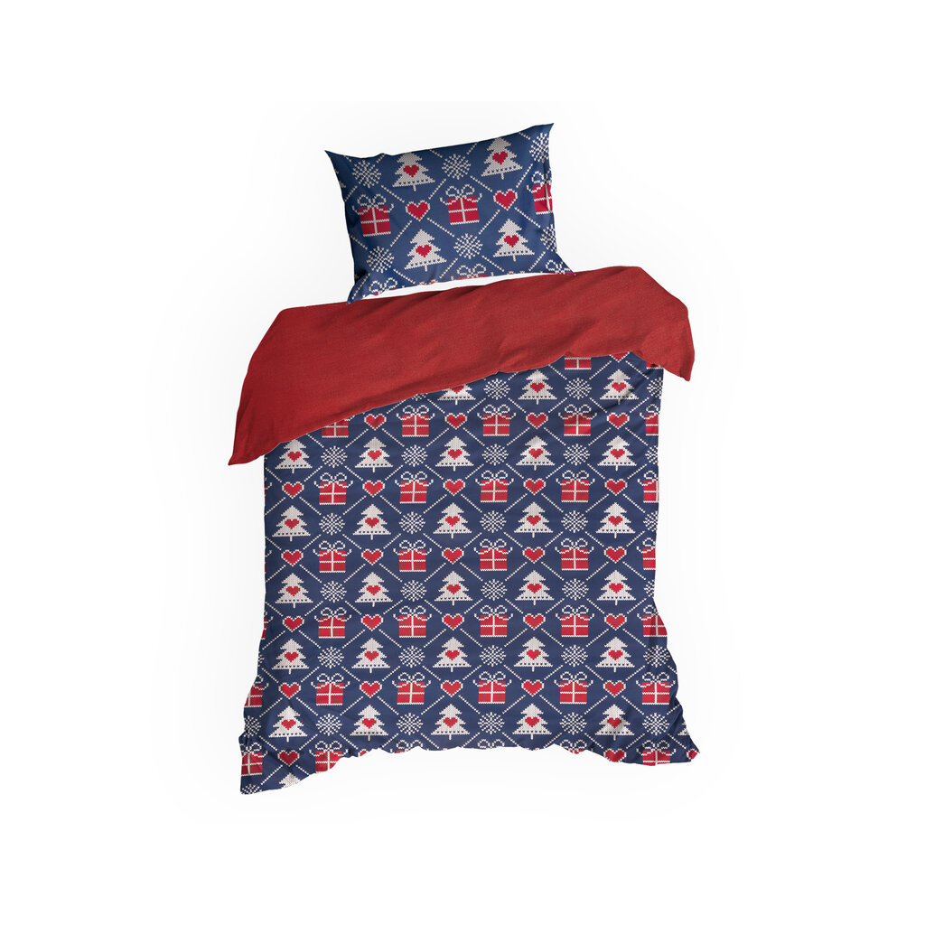 Vianočné obliečky na jednolôžko MERRY | tmavomodrá/červená 140 x 200 cm