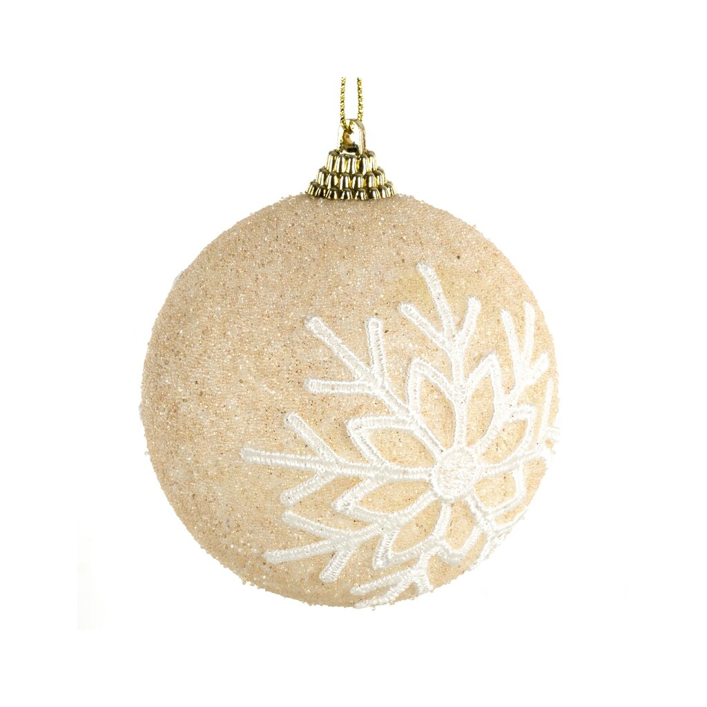 Plastová ozdoba zdobená trblietkami a ozdobnou snehovou vločkou farba: krémová, zloženie: plast. Cena je uvedená za 1 kus. Minimálne objednateľné množstvo 4 ks. Možno objednať iba násobky čísla 4. Napr. 4, 8, 12 atď.