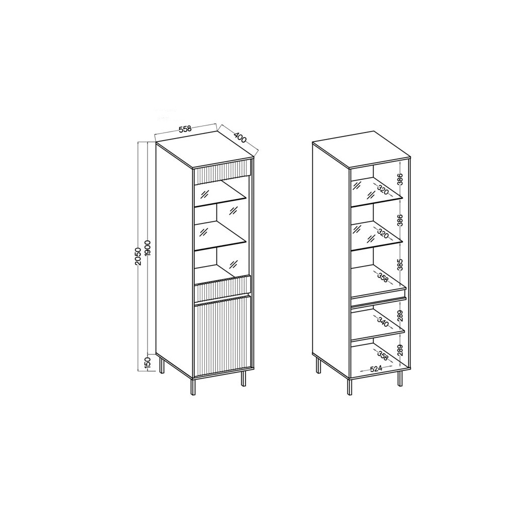 Vitrína KASOA 2F/101 vyniká minimalistickou formou obohatenou o precízne frézované detaily, ktoré do interiéru prinášajú úplne nový rozmer japonskej estetiky. Farebná paleta je ladená do jemných, zemitých tónov, ako je dub evoke, doplnená o čierne akcenty, ktoré elegantne kontrastujú so svetlými odtieňmi. Jednoduché čierne kovové nohy dodávajú nábytku ľahkosť a vizuálnu vzdušnosť bez toho, aby pôsobil ťažkopádne. Vitrína je dvojdverová s dvomi sklenenými a jednou drevenou policou.