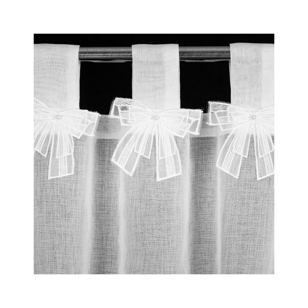 Hotová záclona s ozdobnými záševkami v tvare mašle šírka: 140 cm, dĺžka: 250 cm, farba: biela, hmotnosť: 70 GSM, zloženie: Materiál: 100% polyester