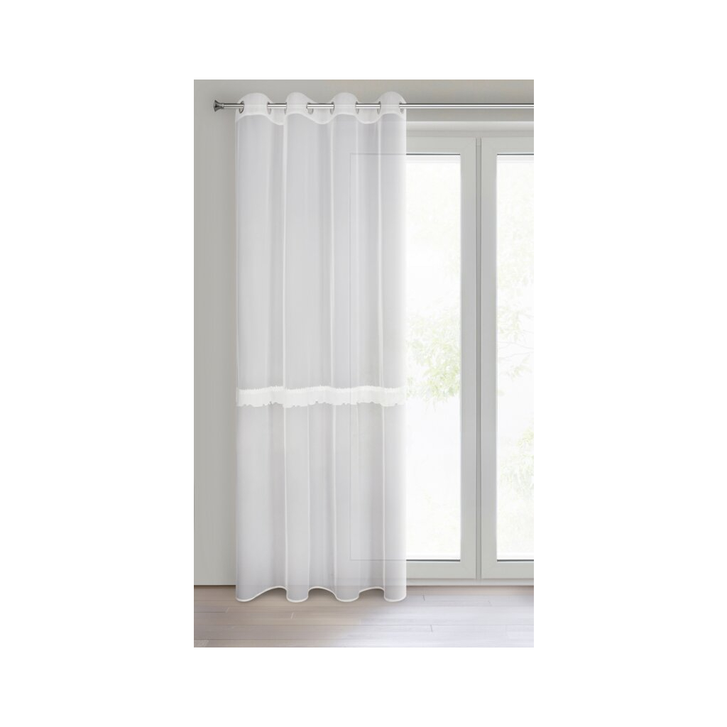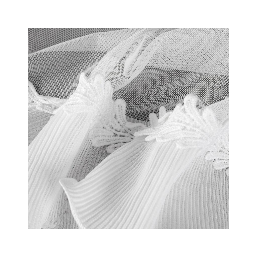 Hotová záclona zdobená aplikáciou šírka: 140 cm, dĺžka: 260 cm, farba: biela, hmotnosť: 70 GSM, zloženie: Materiál: 100% polyester