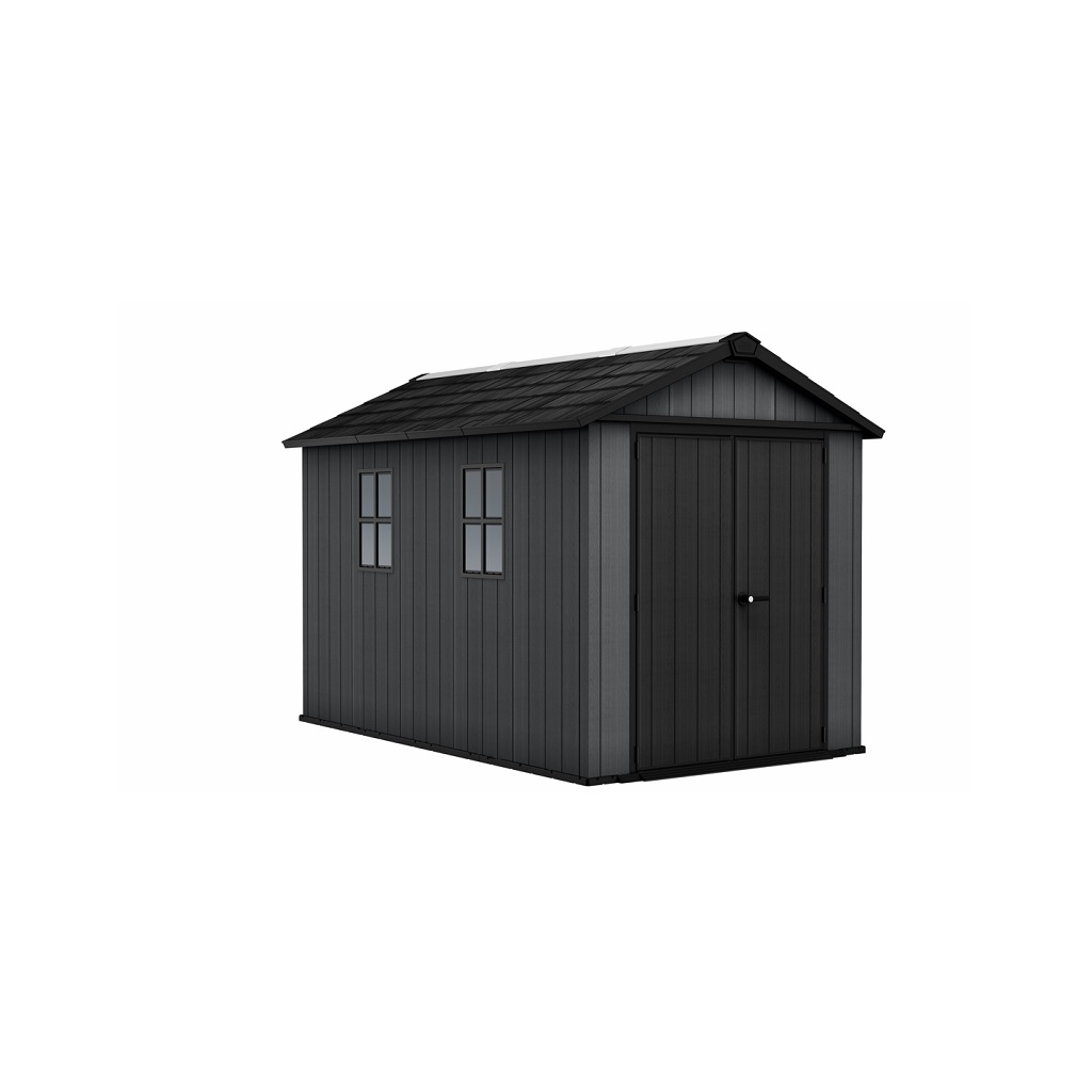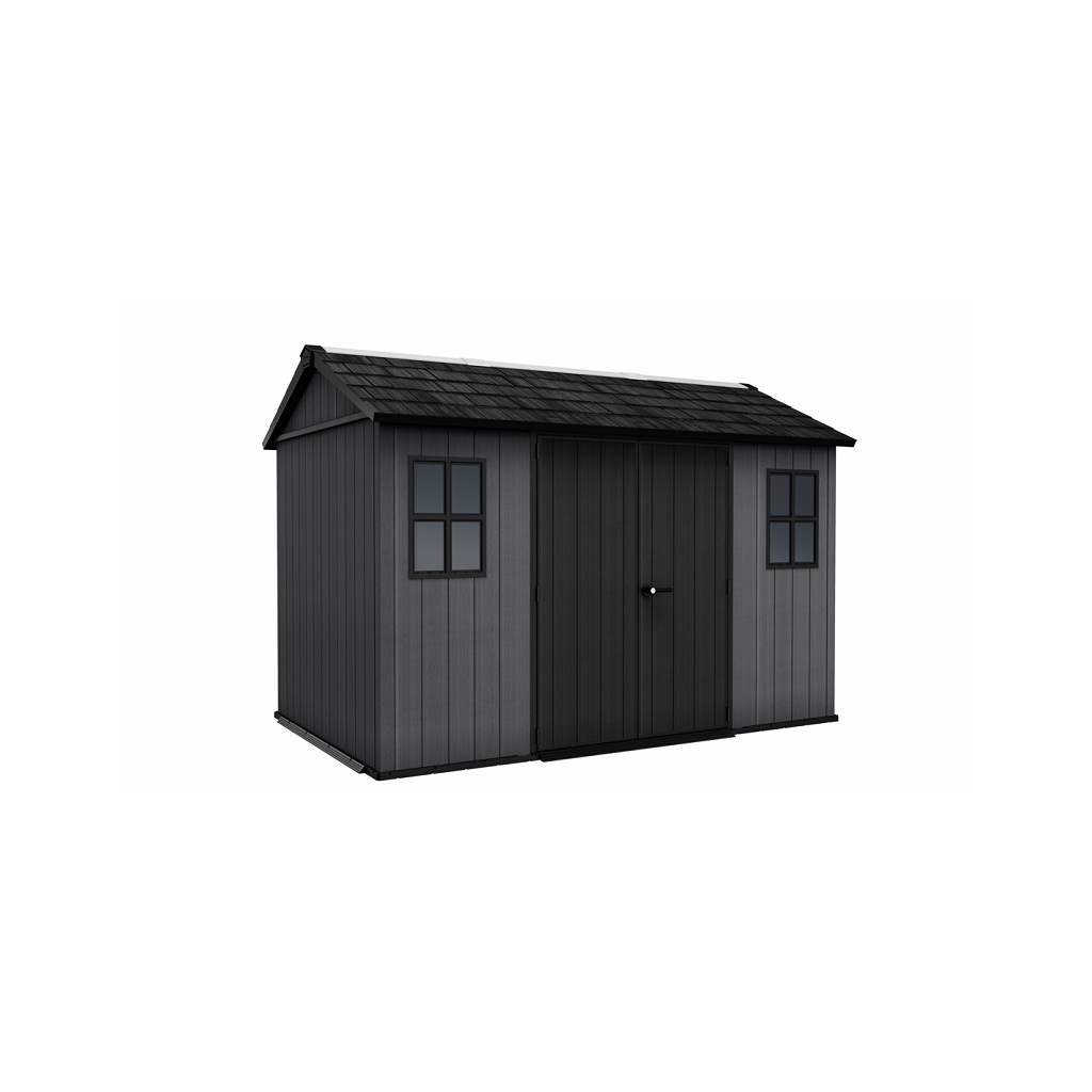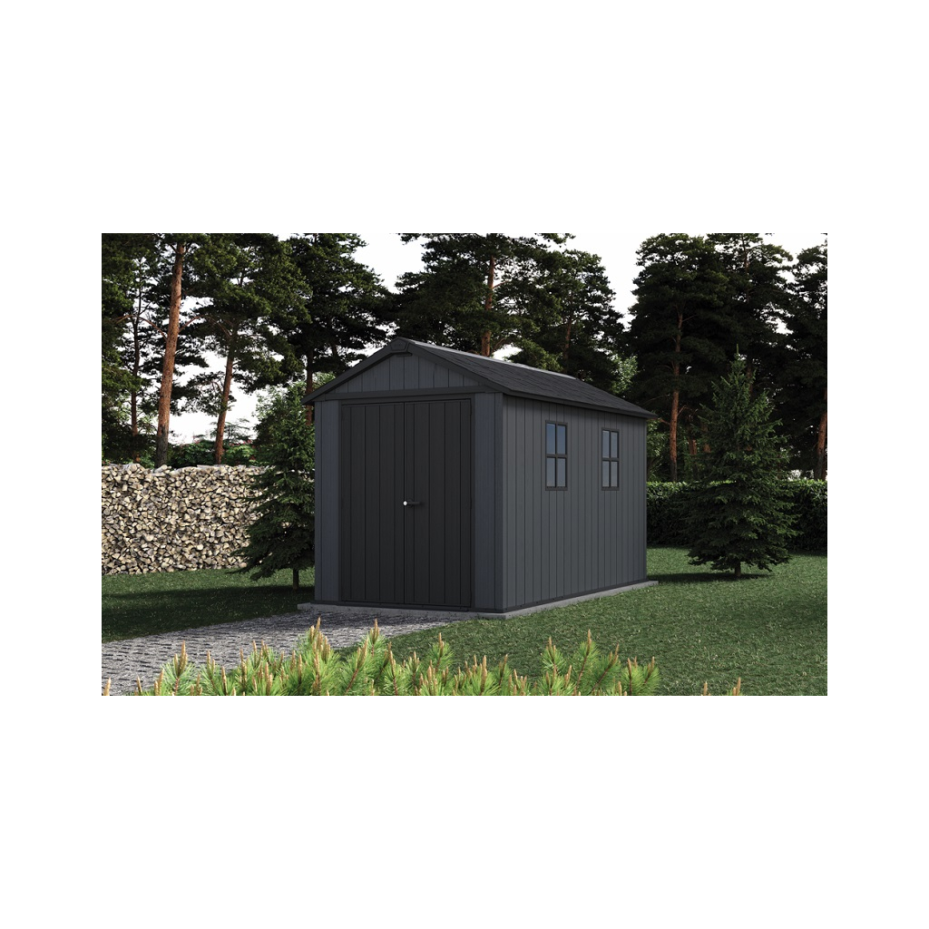 Moderný dizajn záhradného domčeka ISAAC Plus 11 x 7,5 v sivom farebnom prevedení umožňuje flexibilné prispôsobenie podľa vašich potrieb. Tento domček na náradie alebo záhradné potreby je ideálnym riešením pre tých, ktorí hľadajú funkčné a štýlové riešenia do svojej záhrady. Jeho priestranný interiér ponúka možnosť inštalácie skriniek, políc na uloženie náradia a ďalšieho vybavenia. Police nie sú súčasťou záhradného domčeka, ale môžete si ich doobjednať - Police do záhradného domčeka SHELVING KIT 100 .