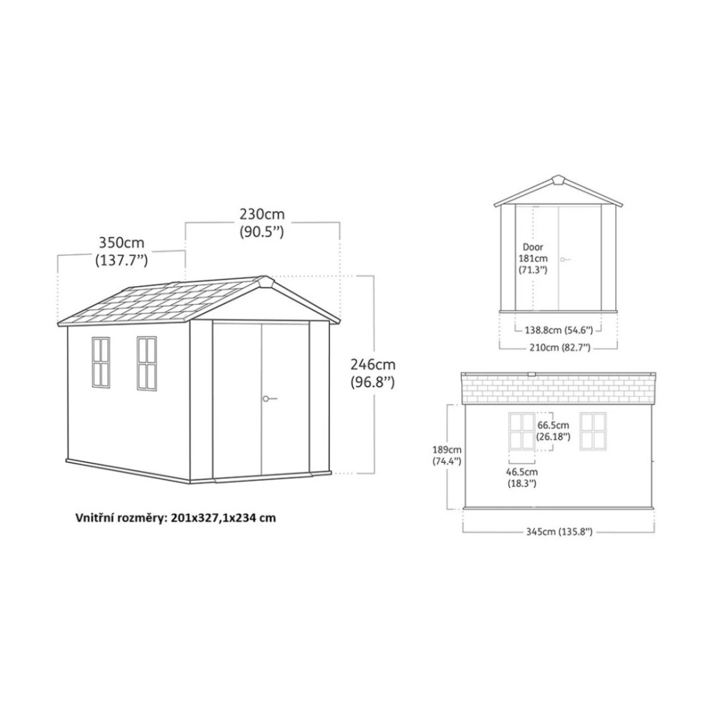 - vnútorné rozmery: 201 x 327 x 234 cm