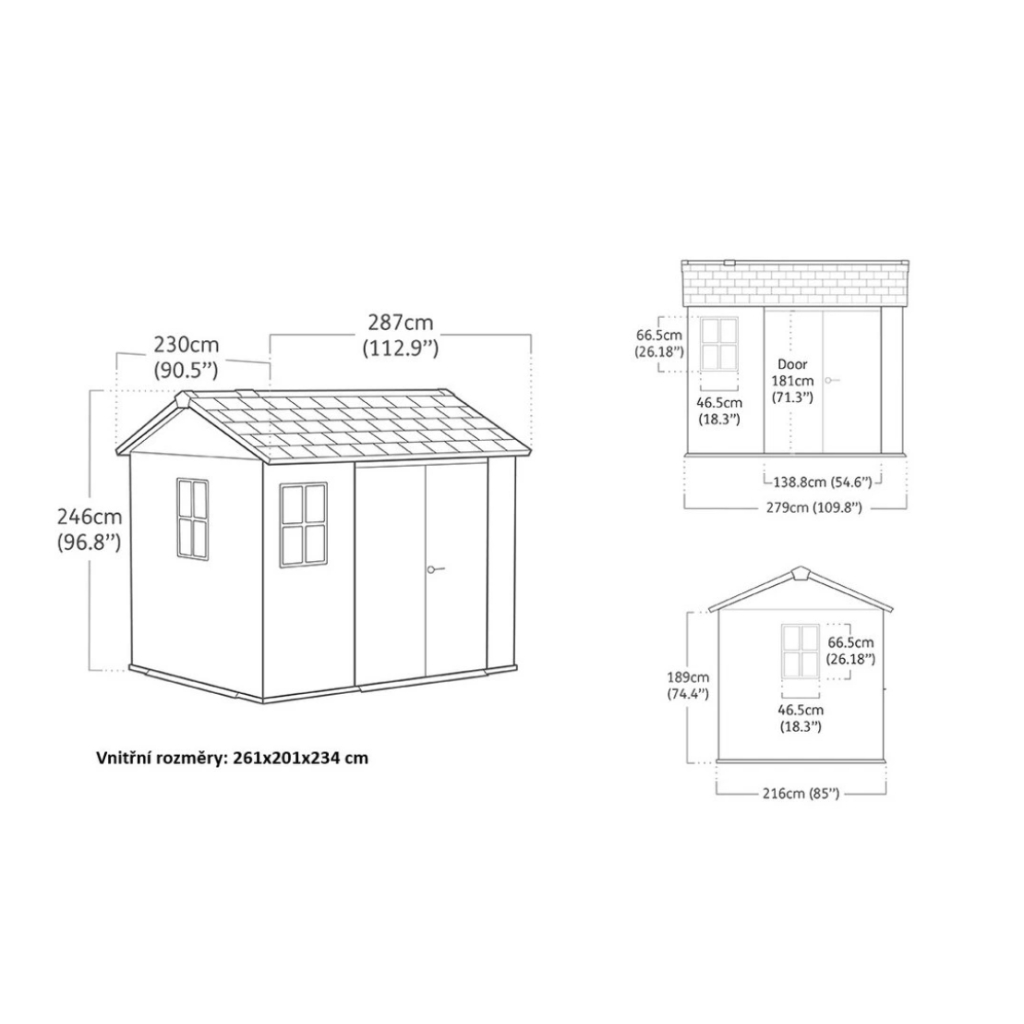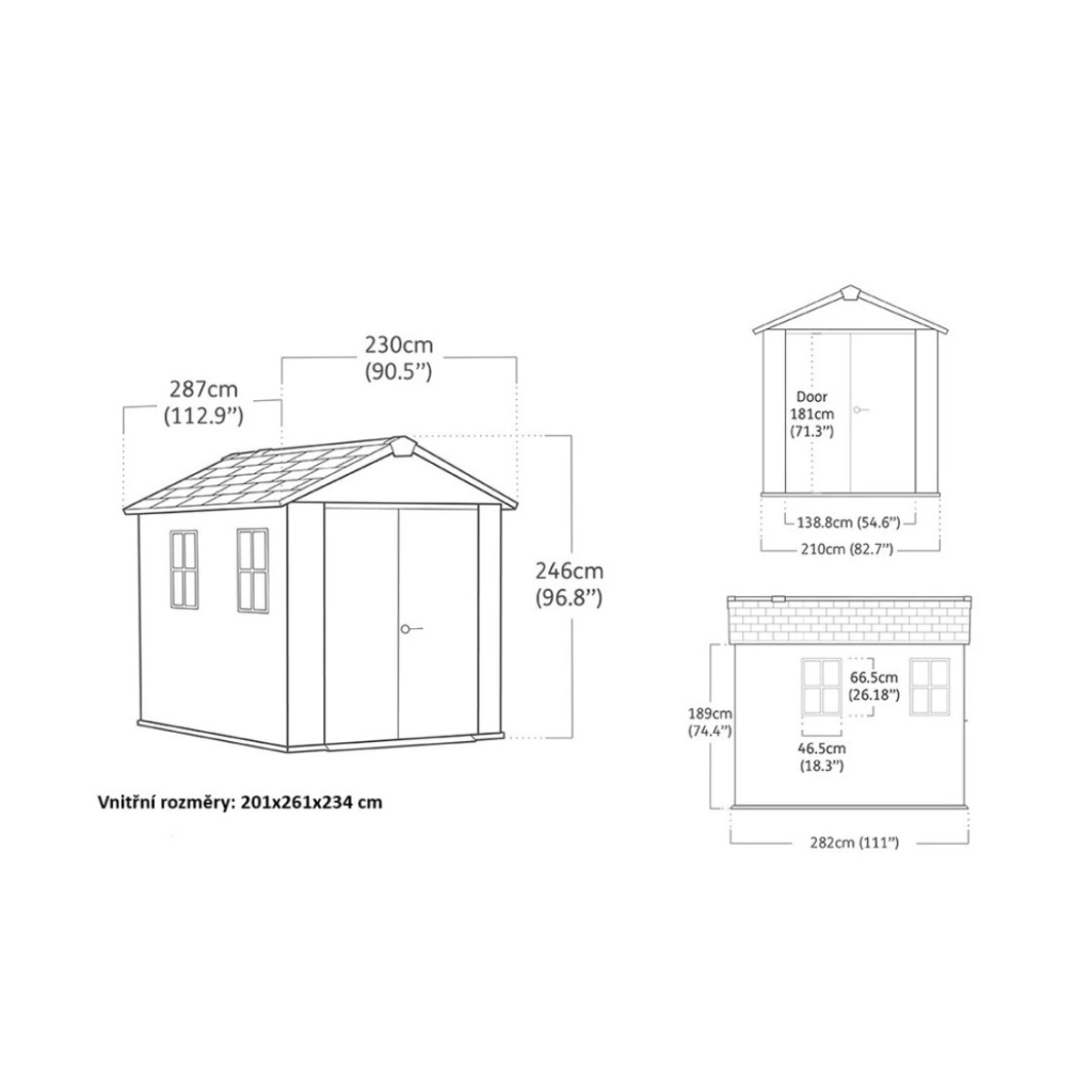 - vnútorné rozmery: 201 x 261 x 234 cm