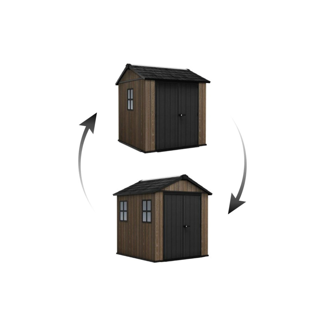 Domček je vyrobený formou jedinečnej technológie DecoCoat™, vďaka čomu je tento inovatívny materiál odolný voči poveternostným vplyvom a nevyžaduje žiadnu údržbu, nehrdzavie ani sa nelúpe. Odolné podlahové panely, kvalitné odvetranie pod strechou a svetlíky pre dostatok prirodzeného svetla podporia perfektný dojem zo záhradného domčeka. Tento domček môžete zostaviť dvoma rôznymi spôsobmi podľa svojich preferencií. Sami si zvolíte, na ktorú stranu umiestnite dvere a okná.