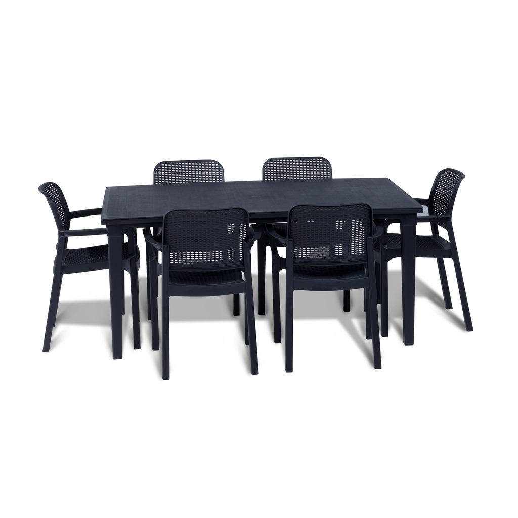 Záhradné kreslo SAMANTHA vo farbe grafit kombinuje robustnú konštrukciu a klasickú eleganciu. Tvarované operadlo kresla SAMANTHA s ratanovou väzbou a stabilnými opierkami sú maximálne pohodlné. Stolička sa vyznačuje vysokou stabilitou a odolnosťou voči poškodeniu. Moderné prevedenie stoličky SAMANTHA si nájde svoje miesto v každej záhrade či na terase.