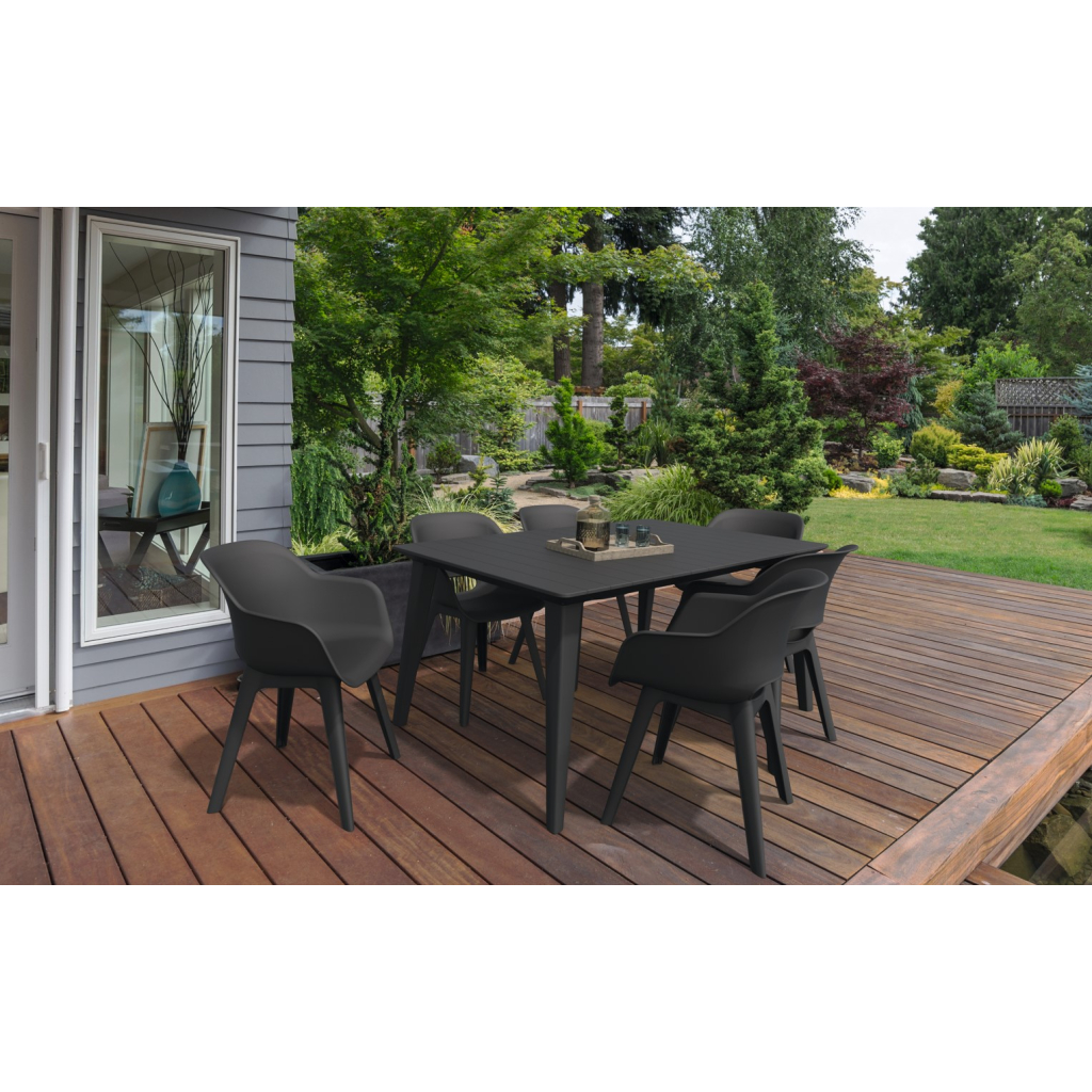 Elegantná záhradná súprava NIA je štýlový a praktický set vyrobený z odolného plastu vysokej kvality. V grafitovej farbe ponúka šesť stabilných stoličiek s pevnou konštrukciou a ľahký, no robustný stôl. Celá zostava je navrhnutá tak, aby odolala UV žiareniu aj nepriaznivému počasiu. Doprajte svojej terase alebo záhrade moderný vzhľad so súpravou NIA a vytvorte si priestor plný pohody a relaxu.