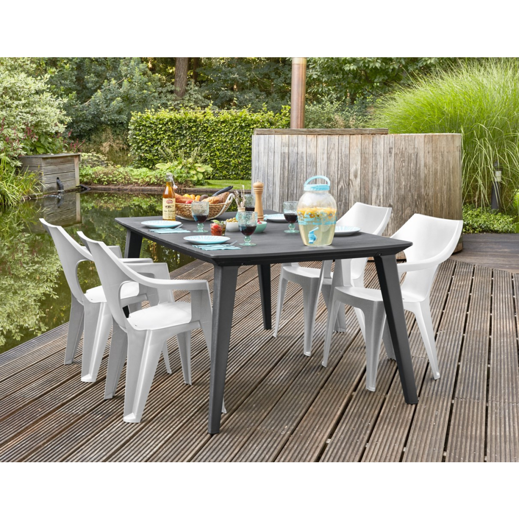 Záhradný plastový set ROCCO v elegantnom dizajne prinesie do vášho exteriéru moderný štýl a komfort. Súčasťou setu je odolný plastový stôl a štyri ergonomické stoličky, ktoré zabezpečia pohodlie pri každom posedení. Či už chystáte rodinnú oslavu, grilovanie s priateľmi alebo si len chcete dopriať oddych na čerstvom vzduchu, set ROCCO je ideálnou voľbou. Vytvorte si v záhrade či na terase príjemný priestor na relax s kvalitným a vkusným záhradným nábytkom.