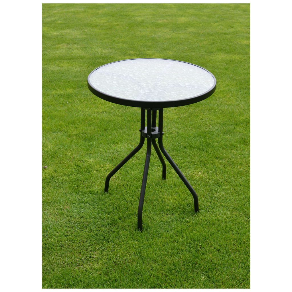 Okrúhly kovový stôl ZWT-03 so sklenenou 5 mm stolovou doskou v čiernej farbe. Pri doplnení stola o kreslo ZWMC-31 si vytvoríte veľmi pekný set, ktorý sa perfektne hodí na balkón či terasu.