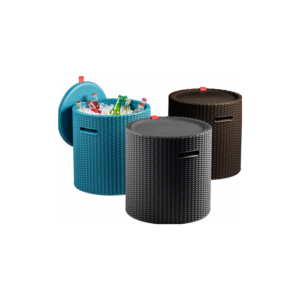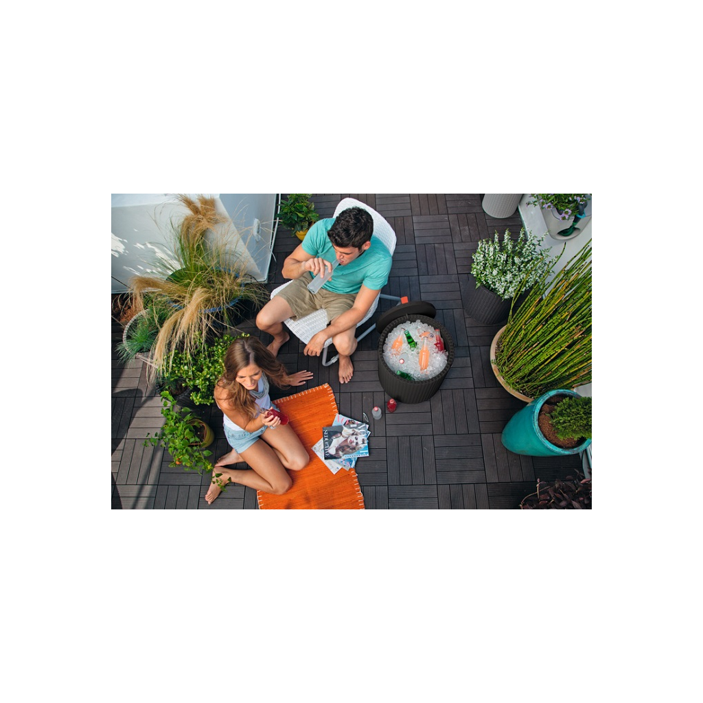 Prakticky záhradný stolík COLDNESS - bar s chladiacim boxom má elegantný dizajn, povrch je v imitácii ratanu. Veľmi užitočné riešenie pri organizovaní záhradnej párty s priateľmi a rodinou. Pre jednoduchú manipuláciu je produkt vybavený bočnými držadlami. Záhradný stolík je v najpredávanejšom farebnom prevedení čo je grafit.