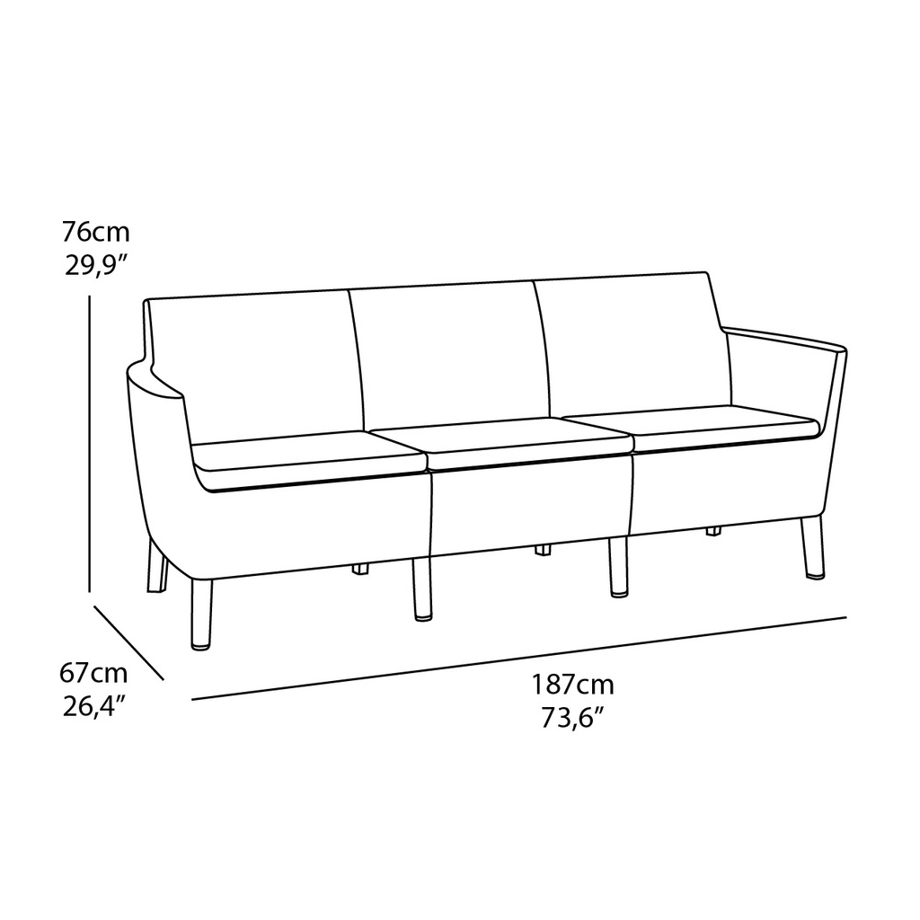 Praktické sedenie SALOMON je úplná novinka na trhu, skvele vynikne v modernom aj retro štýlu bývania. Jedná sa o elegantný set v imitácii ratanu, ktorý je vhodný do každej záhrady. Skladá sa z dvoch kresiel, trojitého gauča a stola, ktorý navyše slúži ako úložný box. Produkt je dodávaný s pohodlnými poduškami v štýlových farbách. Ľahká a stabilná konštrukcia nábytku sa skvele hodí do exteriéru aj interiéru. Set je veľmi jednoduchý na údržbu a je vysoko odolný proti UV lúčom a poveternostným vplyvom.