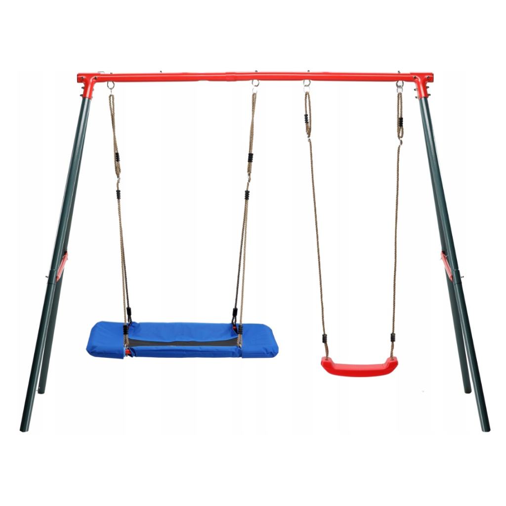 Detská záhradná hojdačka CHILL má robustnú konštrukciu z kovových rúrok rôznych priemerov zabezpečuje maximálnu odolnosť a bezpečnosť. Plastové sedadlá v živých farbách nielenže oživia vzhľad, ale tiež poskytujú vysoký komfort pri používaní. Odolné nosné laná sú vyrobené z materiálov, ktoré zvládajú aj nepriaznivé poveternostné podmienky, vrátane dažďa. Bezpečné zaoblené hrany s ohľadom na bezpečnosť detí, aby sa minimalizovalo riziko úrazu. Jednoduchá montáž a údržba minimálne požiadavky na zostavenie a starostlivosť šetria váš čas a energiu.