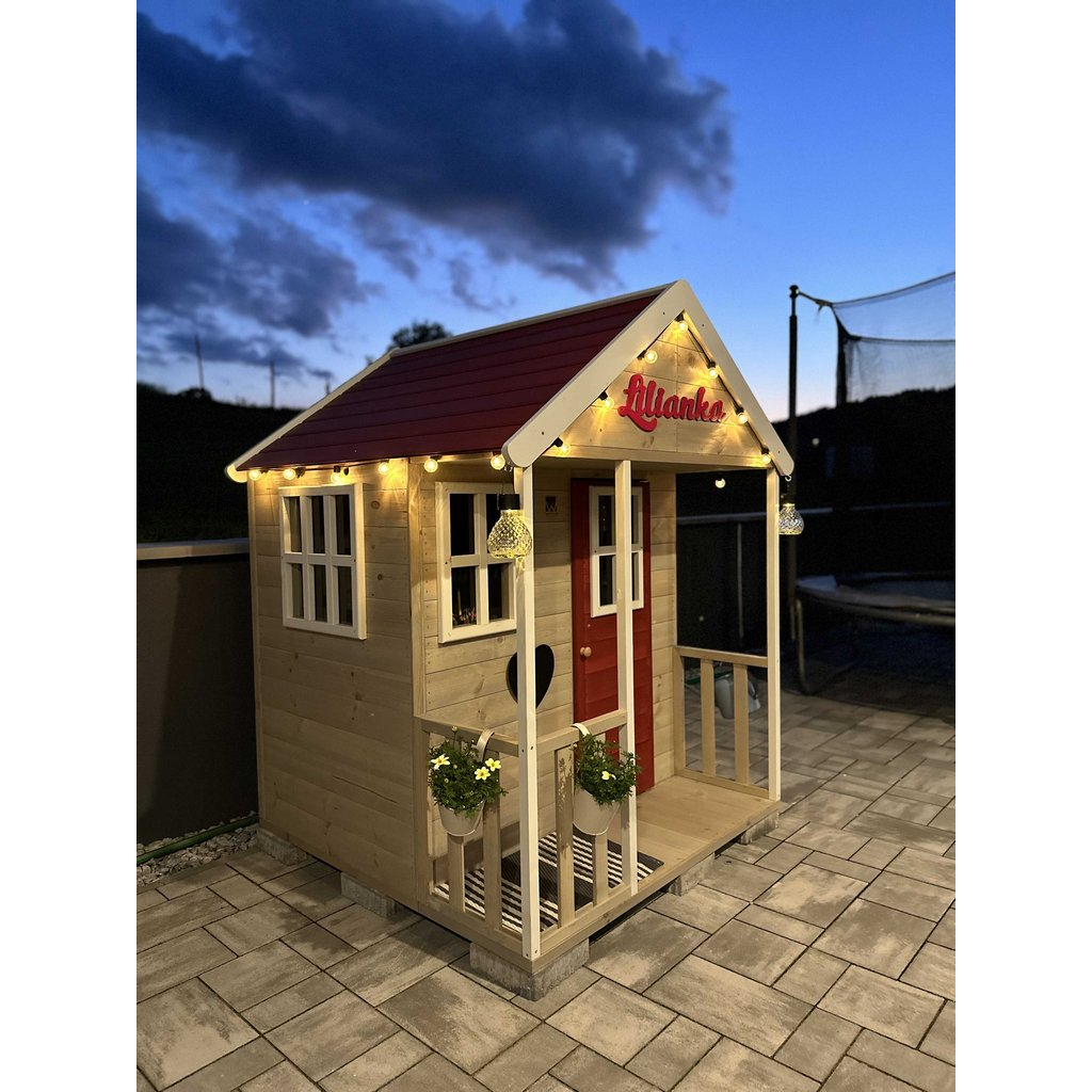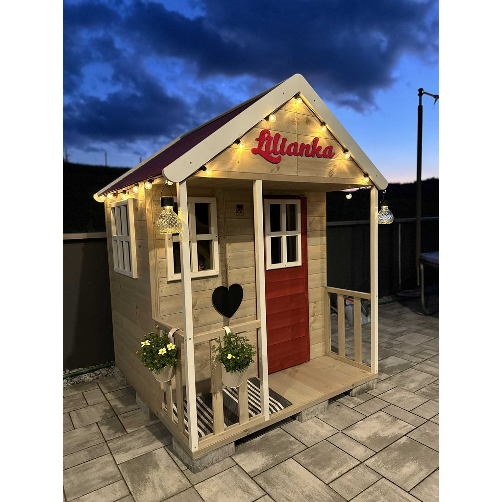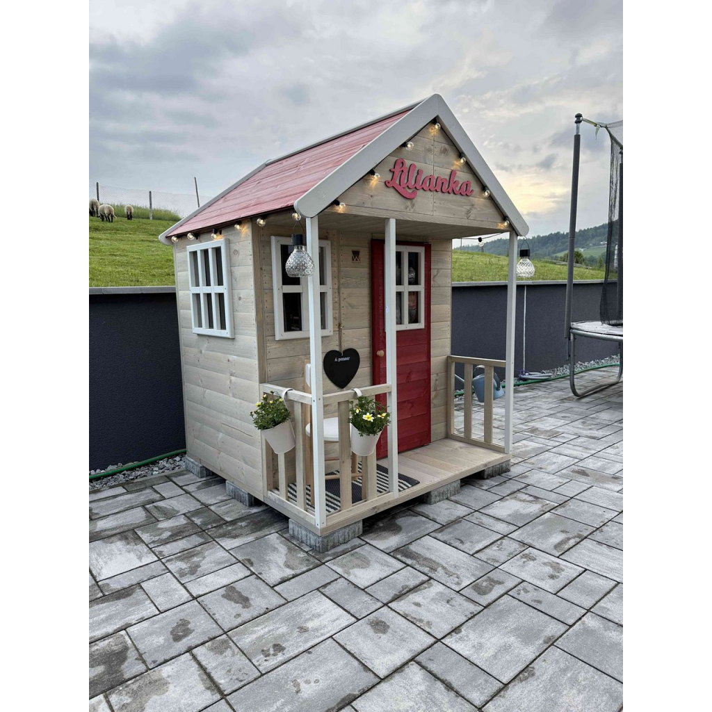 Snom každého dieťaťa je mať na záhrade tiché bezpečné miesto, miesto na oddych či hru s kamarátmi - na svoj záhradný detský domček. Hravý drevený záhradný detský domček COTTAGE sa stane obľúbeným miestom pre zábavu a relax vašich nezbedných detí. Záhradný domček COTTAGE má okno, ktoré je vybavené krásnymi a funkčnými okenicami. Praktická terasa pred domčekom vašim deťom umožní nadýchať si čerstvý vzduch aj v daždivom počasí. Pekná polica nad vchodom slúži na uloženie hračiek či iných potrebných vecí. Strecha, ktorá zakrýva terasu pred dažďom, umožňuje deťom vyzuť si topánky a vstúpiť do domu, aby bola hra pohodlnejšia. So záhradným domčekom COTTAGE môže začať tá pravá schovávačka, prespávačka, zábava a hranie.