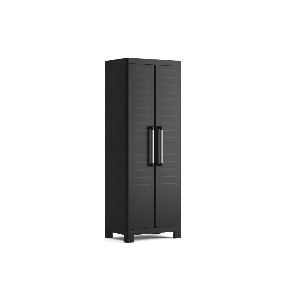 Praktická plastová skriňa TROY HIGHT vyniká moderným dizajnom, jednoduchou montážou a praktickým využitím v rôznych priestoroch. Poskytuje dostatok úložného priestoru vďaka štyrom policiam, ktoré si môžete jednoducho prispôsobiť podľa potreby. Police sú vybavené bezpečnostným systémom, ktorý umožňuje ich jednoduché nastavenie a zároveň zabezpečuje stabilitu. Skriňa má zvýšené nohy umožňujú jednoduché čistenie podlahy pod skriňou a praktický spojovací systém umožňuje prepojenie viacerých skríň do jednej zostavy. Skriňa je vhodná do dielne, garáže, skladov, prevádzkových hál, ale aj na zastrešené terasy alebo do záhradných domčekov.