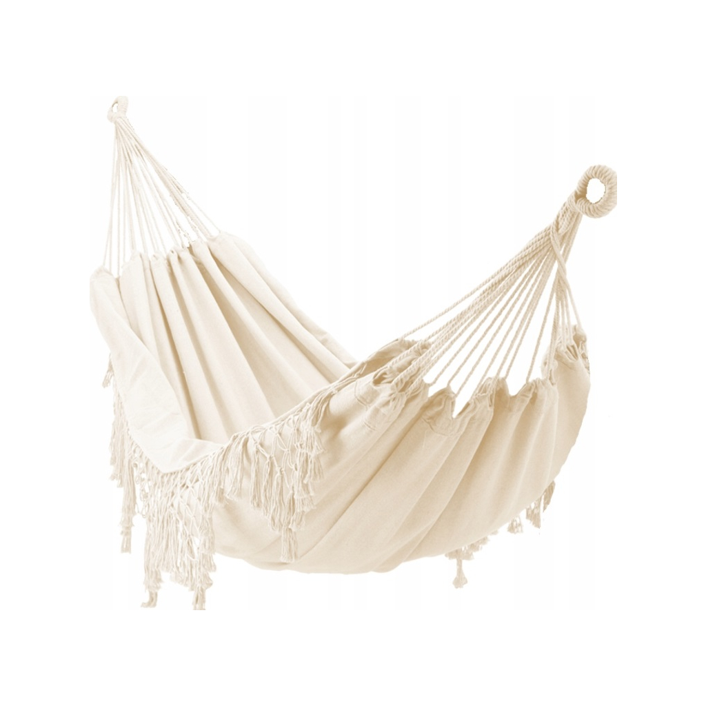 Záhradná závesná sieť BOHO v béžovej farbe so šírkou 150 cm a dĺžkou 200 cm si získala srdcia detí aj dospelých. Závesné sieť skvele poslúži v záhrade, na terase, balkóne alebo aj v izbe. Užite si chvíle oddychu v tichu a pohodlí so závesnou sieťou, ktoré dokonale splní vaše očakávania.
