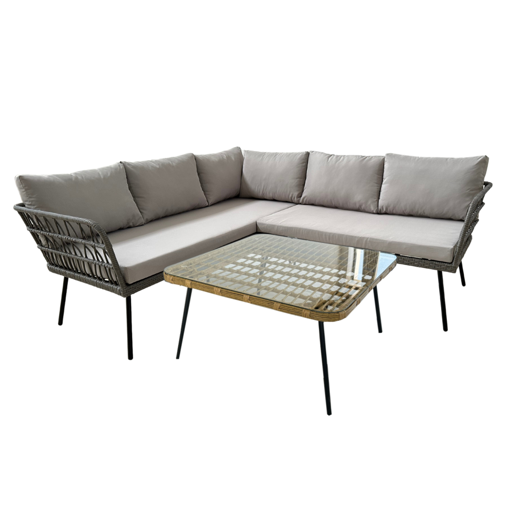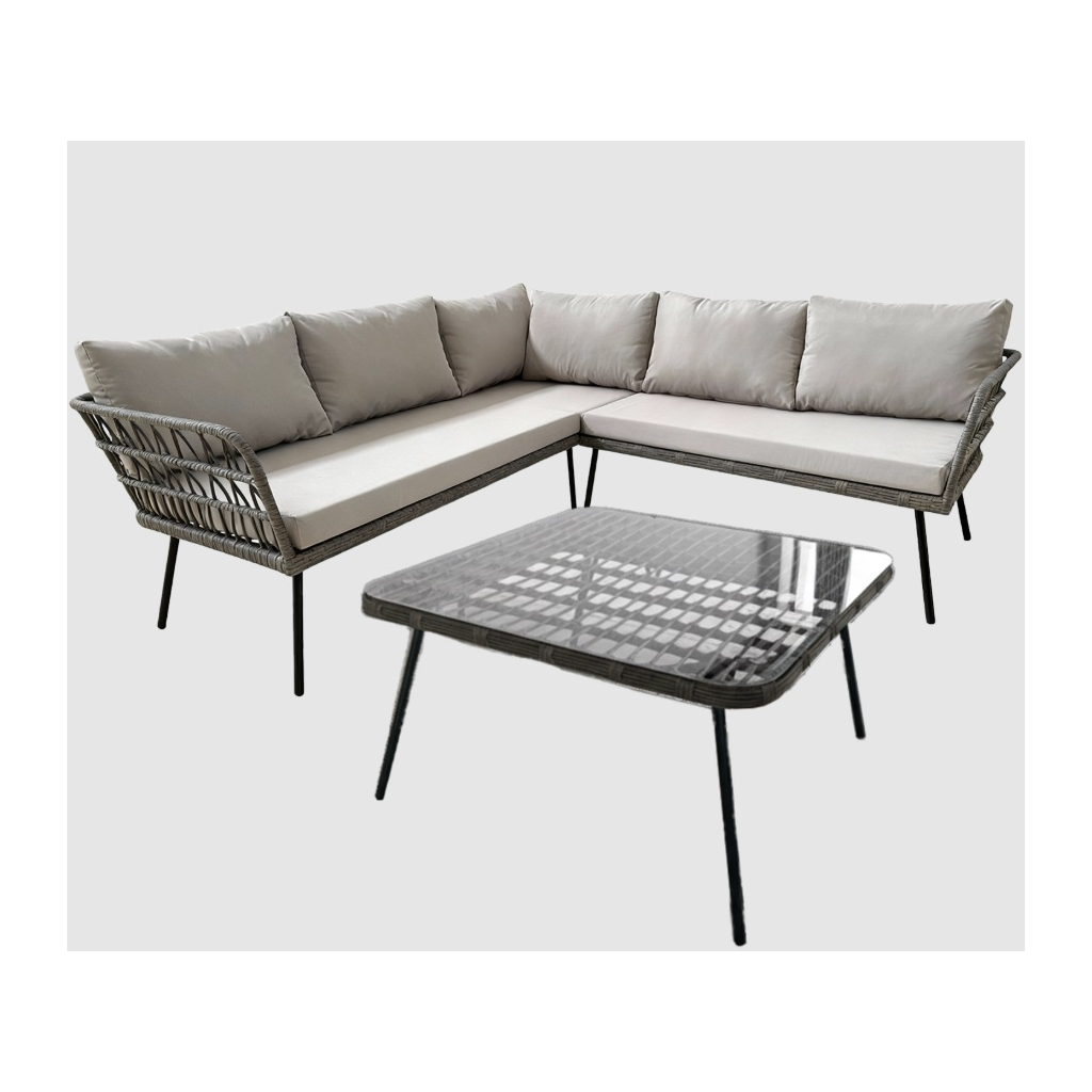 Štýlová a pohodlná zostava záhradná zostava FLOTES je ideálna do záhrady, na terasu, balkón alebo verandu. Súčasťou setu je rohová pohovka a praktický stolík so sklenenou doskou. Záhradný set má moderné sivé prevedenie, ratan je sivý a podušky sú tiež v sivej farbe, vďaka čomu sa jednoducho hodí do rôznych exteriérov aj interiérov. Táto elegantná rohová zostava je vhodná ako hlavná relaxačná zóna v záhrade, miesto na stretnutia na terase, pohodlné sedenie na väčšom balkóne alebo štýlový doplnok na verandu. Sklenený stolík je ideálny na odkladanie kávy, nápojov alebo občerstvenia. Pohodlné sedadlá s hrubými poduškami zabezpečujú komfort aj počas dlhého sedenia. Zostava je vhodná na čítanie knihy, prácu s notebookom na čerstvom vzduchu, stretnutia s rodinou a priateľmi alebo večerný relax.