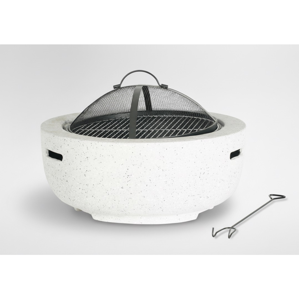 Miska ohniska je vyrobená z magnéziovej dosky MgO, ktorá je veľmi odolná voči vysokým teplotám a mechanickému poškodeniu. Tento materiál je zároveň štýlový a pevný, vďaka čomu ohnisko vydrží dlhé roky. Grilovací rošt je kvalitný a stabilný, ideálny na grilovanie rôznych pokrmov priamo nad ohňom. Pokrývka a pogrzebáč sú tiež z odolného materiálu, ktorý zabezpečuje bezpečné a pohodlné používanie.