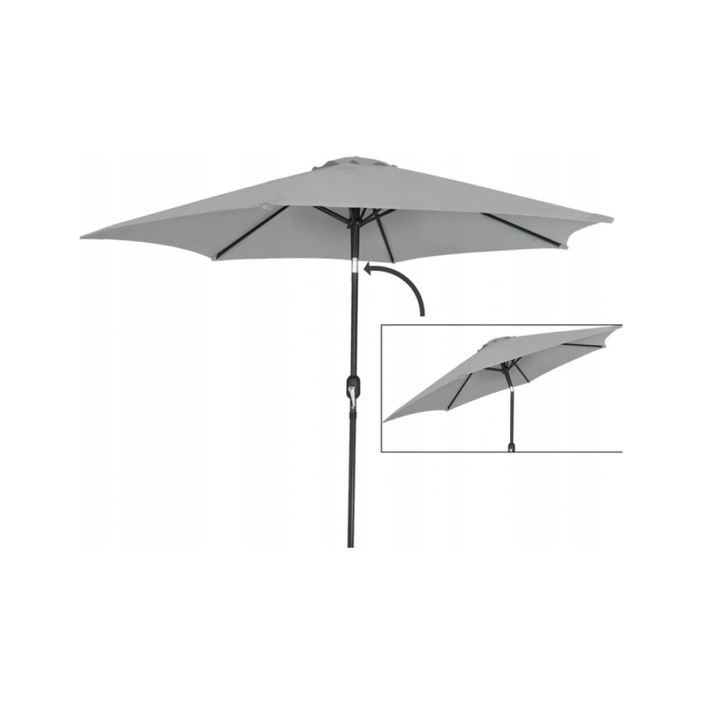 Záhradný slnečník GABO v sivej farbe je ideálny na jarné a letné dni. Perfektne poslúži v exteriéri – na záhrade, balkóne či terase. Skladanie a rozkladanie veľmi jednoduché. Taktiež má záhradný dáždnik má nastaviteľný sklon. Chráni vás pred škodlivými účinkami slnečného žiarenia. Slnečník vyžaduje dodatočné zaťaženie alebo upevnenie k zemi.