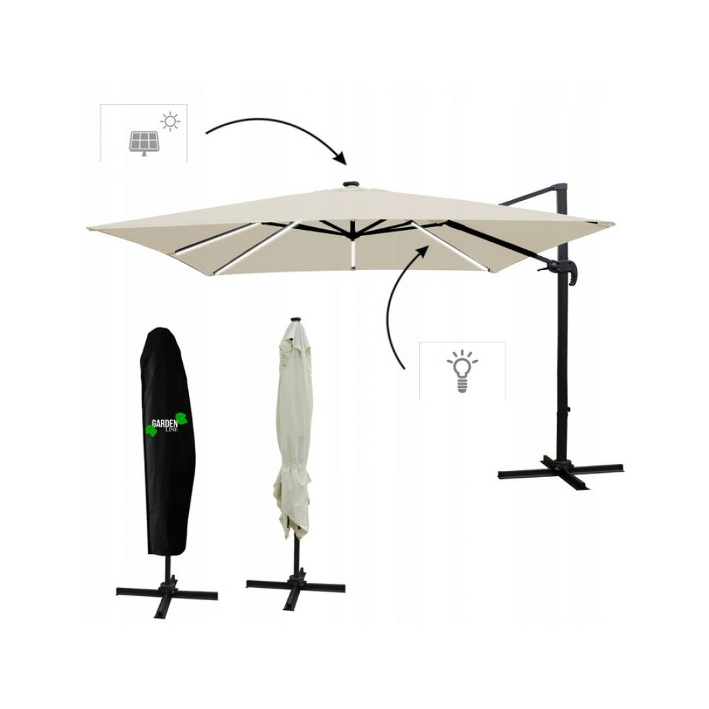 Záhradný slnečník ROMA s LED osvetlením | béžová 300 x 400 cm