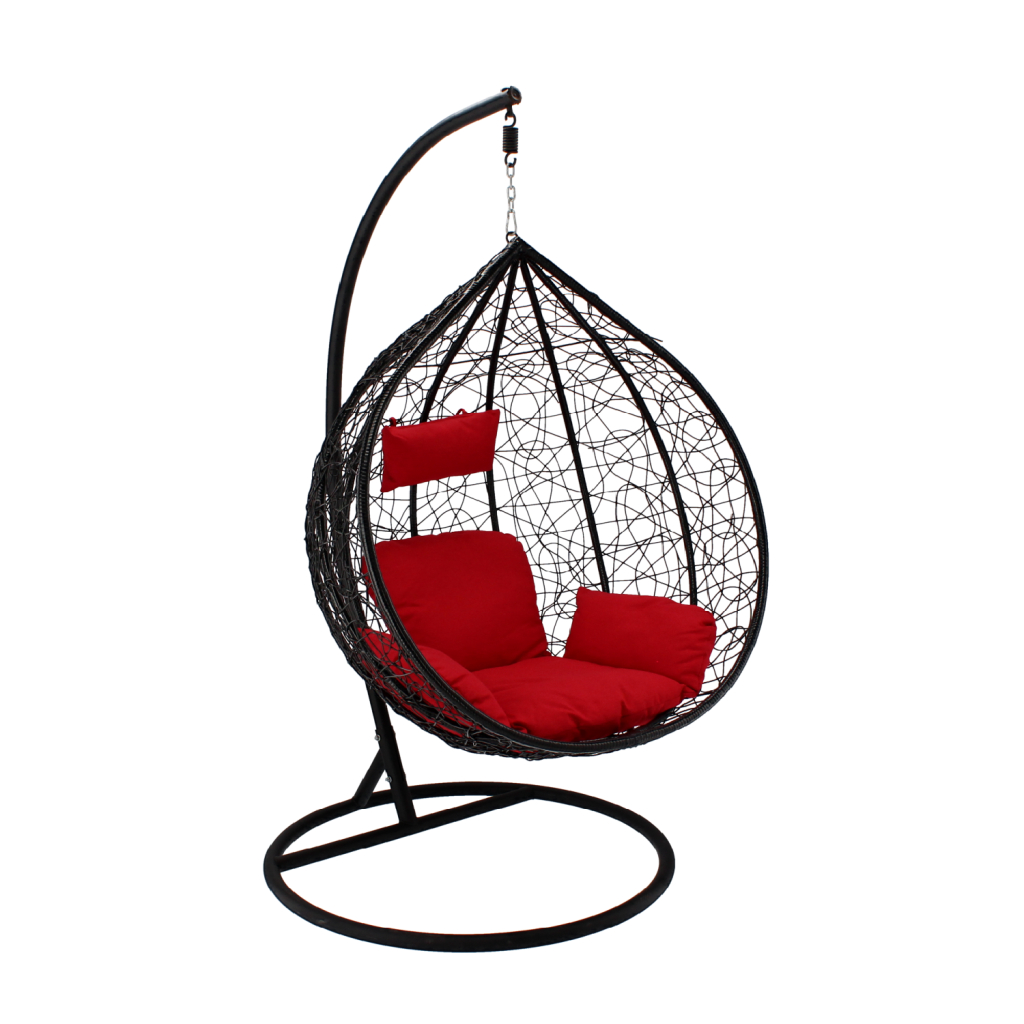 Ak túžite po modernom, štýlovom a pohodlnom záhradnom kresle, ktoré dodá vášmu priestoru jedinečný šarm, náš závesný model kresla NESTIO je tou ideálnou voľbou. Spojenie prvotriedneho spracovania, maximálneho pohodlia a originálneho dizajnu zaručuje, že splní všetky vaše očakávania. Neváhajte a doprajte si záhradné kreslo, ktoré premení vašu záhradu na dokonalé miesto oddychu! Záhradné kreslo je v čiernej farbes červenou výraznou poduškou.