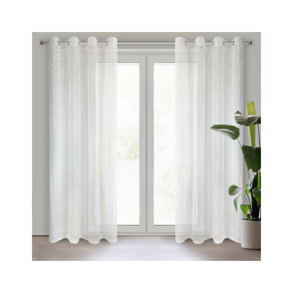 Moderný záves z nepravidelnej sieťoviny s jemným leskom a rôznymi veľkosťami ôk. Ideálna aj ako dekoračná záclona. Nebieliť. šírka: 140 cm, dĺžka: 250 cm, farba: krémová, hmotnosť: 120 GSM, zloženie: Materiál: 100% polyester