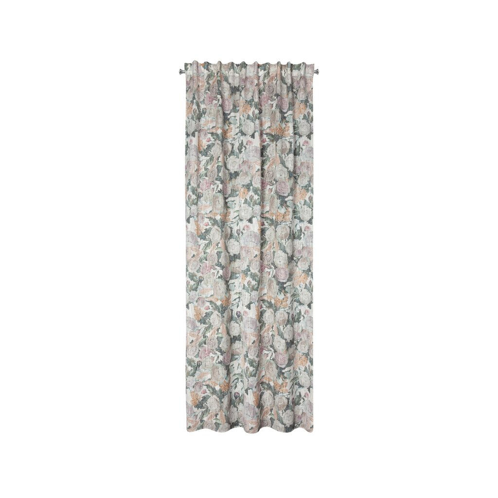 Záves v eko štýle na páske so skrytými ramienkami s kvetinovým motívom šírka: 140 cm, dĺžka: 270 cm, farba: zelená, hmotnosť: 170 GSM, zloženie: 15 % viskóza, 85 % polyester