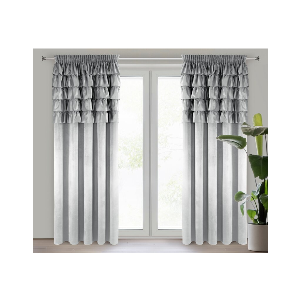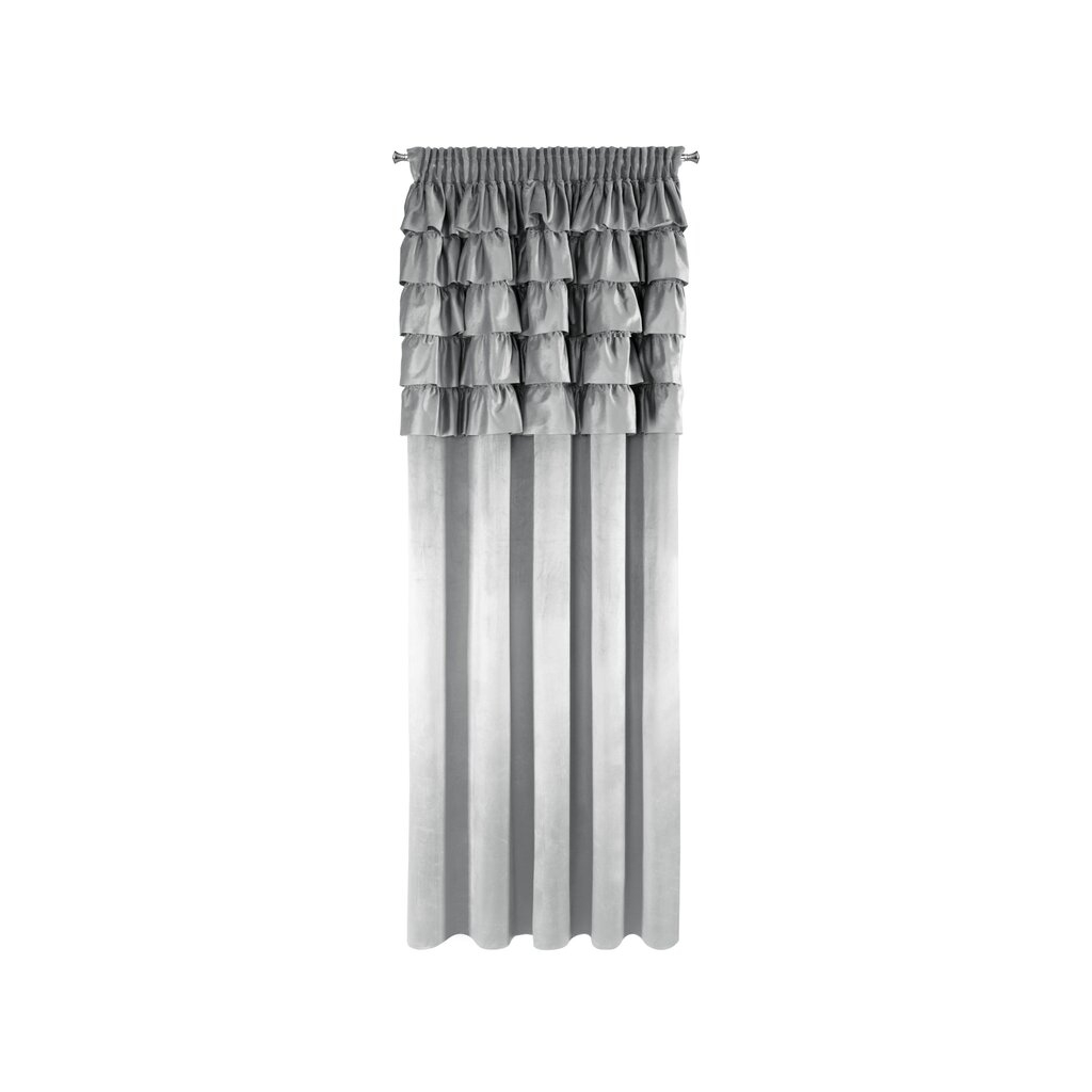 Hotový zamatový záves s volánmi z hornej strany šírka: 140 cm, dĺžka: 270 cm, farba: strieborná, hmotnosť: 200 GSM, zloženie: Materiál: 100% polyester