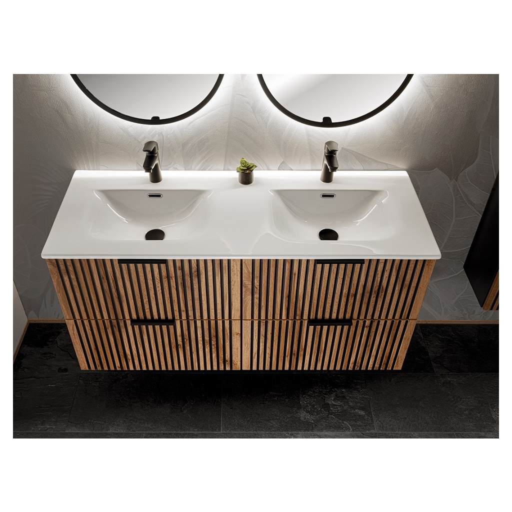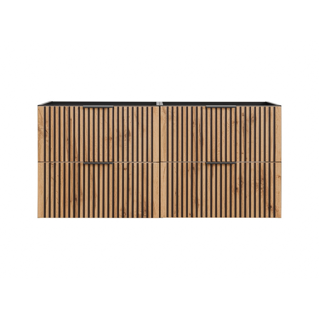 Moderná kúpeľňová skrinka s umývadlom XILO U120/1 v dekore dub wotan to nie je len kvalita a moderný dizajn, ale aj pohodlie a funkčnosť. Výrazný dekor dreva dub wotan v kombinácii s čiernym drážkovaním je novinkou na trhu s nábytkom, ktorá je čoraz obľúbenejšia. Vďaka kvalitným materiálom a modernému prevedeniu vám dlho bude robiť radosť.